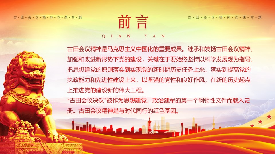 2024微党课中国精神系列党课古田会议精神专题党课ppt模板(带内容)党支部团支部企事业单位2023年党史知识专题辅导