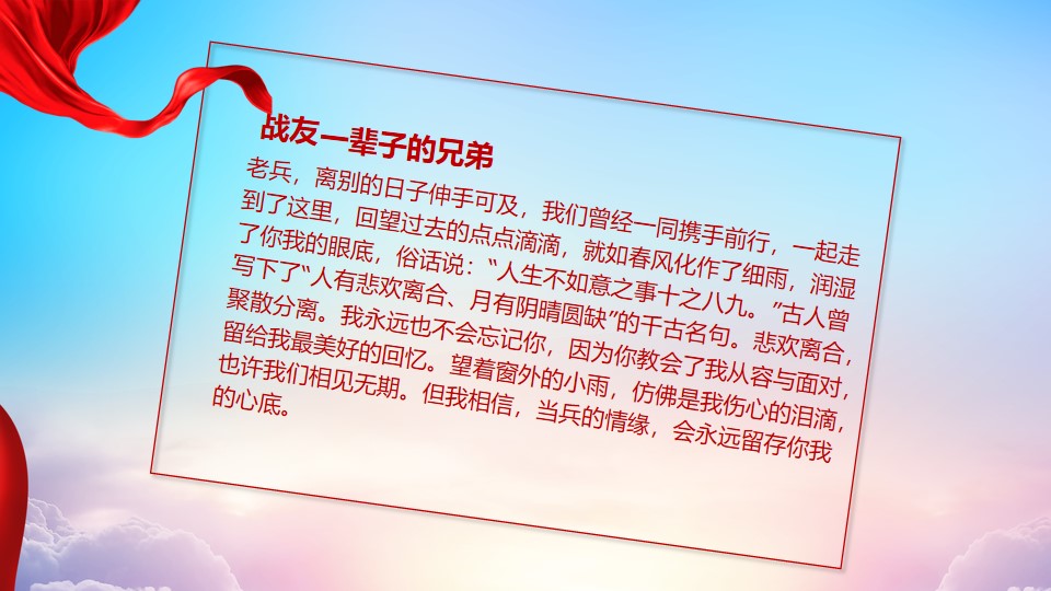青春无悔战友情相册ppt模板(带内容)某某集团军某某师老战友聚会青春无悔战友情相册ppt模板(带内容)某某集团军某某师老战友聚会