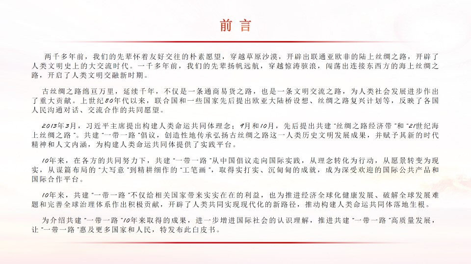 一带一路共建一带一路构建人类命运共同体的重大实践白皮书ppt模板带内容一带一路共建一带一路构建人类命运共同体的重大实践白皮书ppt模板带内容一带一路