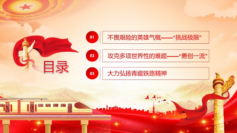 党史知识,企事业,专题辅导,弘扬弘扬青藏铁路精神挑战极限勇创一流ppt模板(带内容)党支部团支部企事业单位2023年党史知识专题辅导党史知识,企事业,专题辅导,弘扬弘扬青藏铁路精神挑战极限勇创一流ppt模板(带内容)党支部团支部企事业单位2023年党史知识专题辅导党史知识,企事业,专题辅导,弘扬