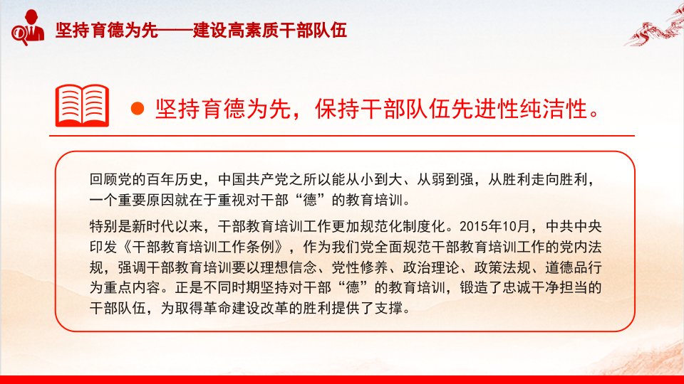 2024微党课坚持育德为先建设高素质干部队伍党课ppt模板(含配套讲稿)保持干部队伍先进性纯洁性党课