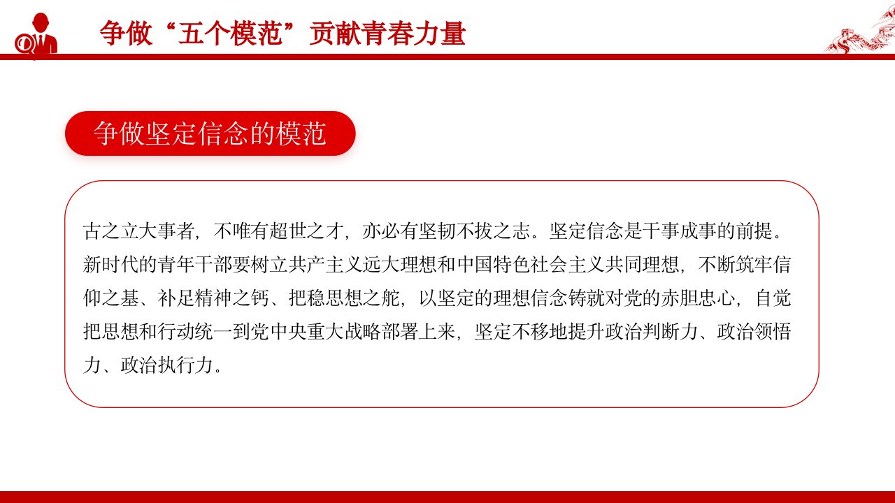2024微党课争做五个模范党课ppt模板(带内容)践行青年使命担当勇担中国式现代化建设重任思想教育党课