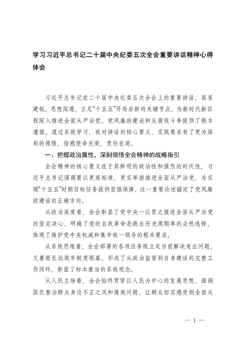在市委理论学习中心组学习扩大会上的研讨发言习近平总书记在二十届中央纪委五次全会上的重要讲话精神心得体会