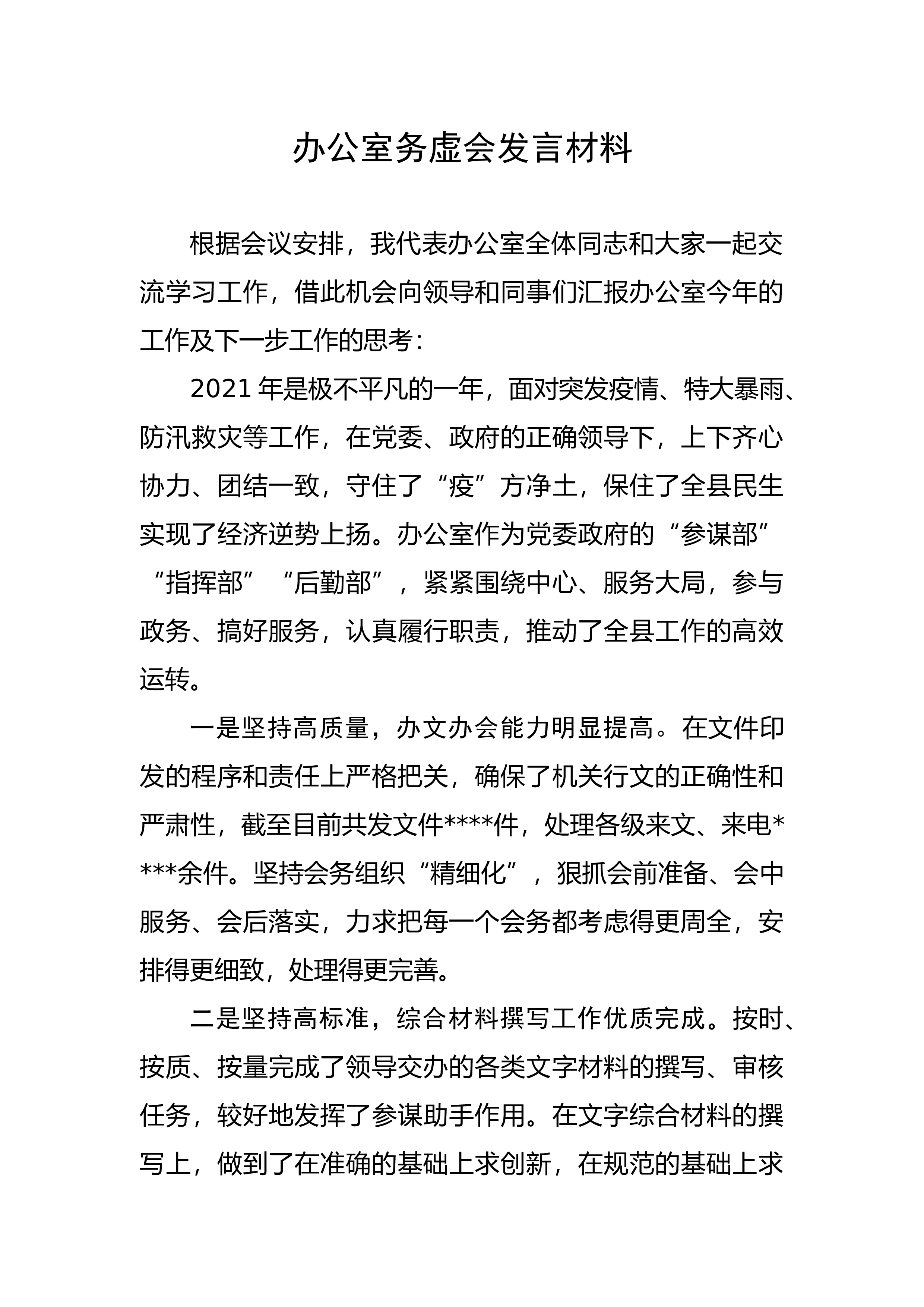党的建设工作领导小组会议主持讲话同志们:今天,我们召开市委第一次党的建设工作领导小组会议,审议2022年市委党的建设工作要点。下面,请市委党的建设工作领导小组办公室的同志汇报要点起草情况。******(汇报结束后)大家有什么意见,请发表。******没有意见,会议原则通过,请抓紧印发实施。过去一年,全市各级党组织深入贯彻党中央决策部署和省委工作要求,全面落实新时代党的建设总要求和新时代党的组织路线,认真开展党史学习教育和庆祝建党100周年系列活动,圆满完成市县乡领导班子集中换届,为实现“十四五”良好开局提供了有力保证。今年是党的二十大召开之年,也是落实省第十二次党代会精神开局之年,全市各级党组...
