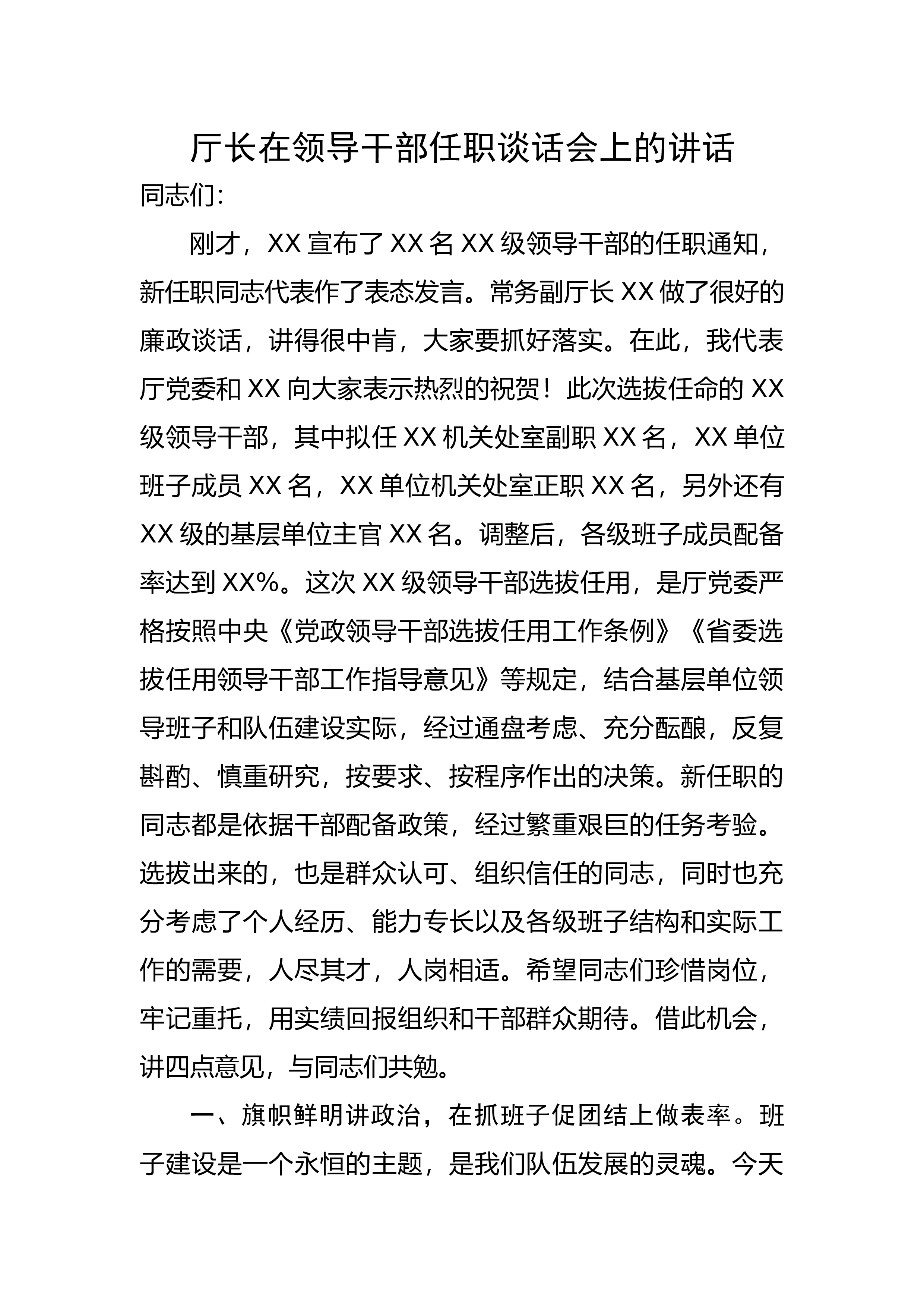【讲话致辞】厅长在领导干部任职谈话会上的讲话