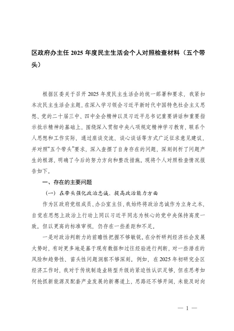 镇2025年度民主生活会个人对照检查材料在带头强化政治忠诚提高政治能力在带头固本培元增强党性在带头敬畏人民敬畏组织敬畏法纪五个带头