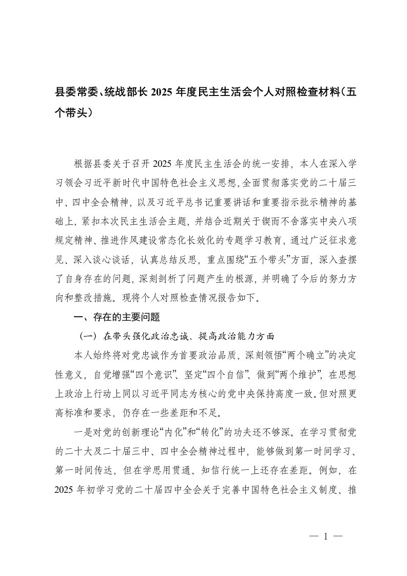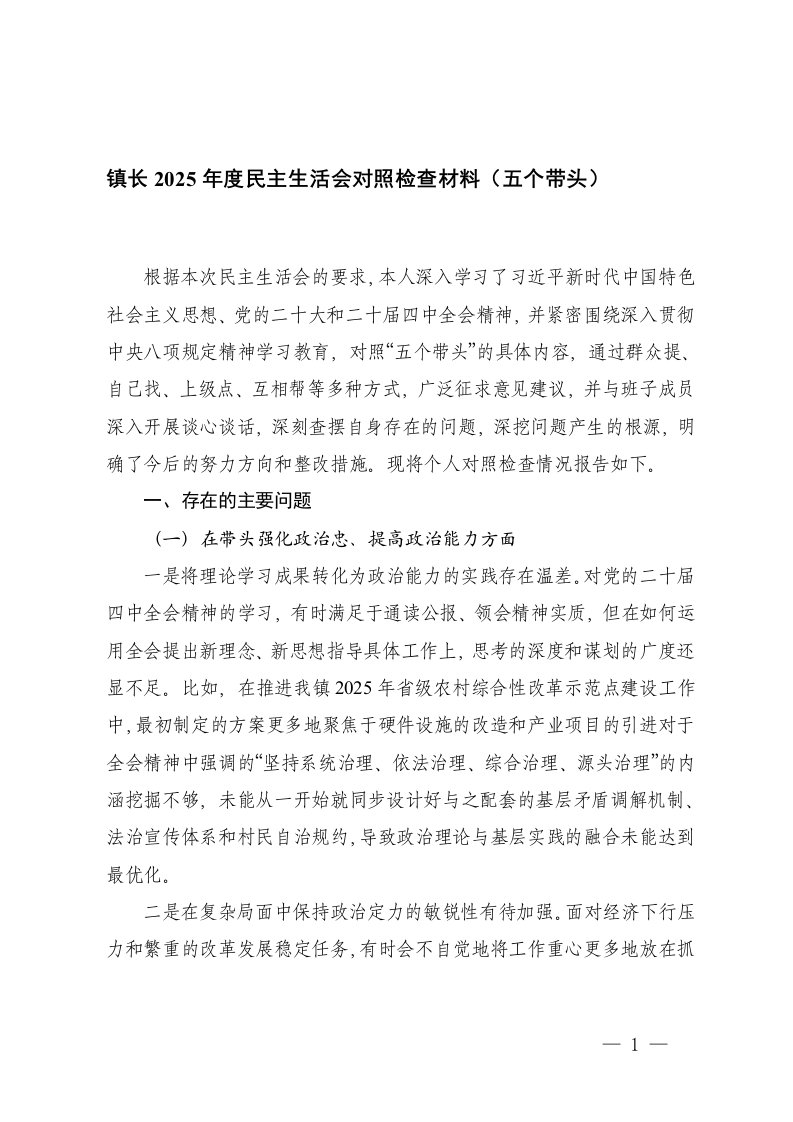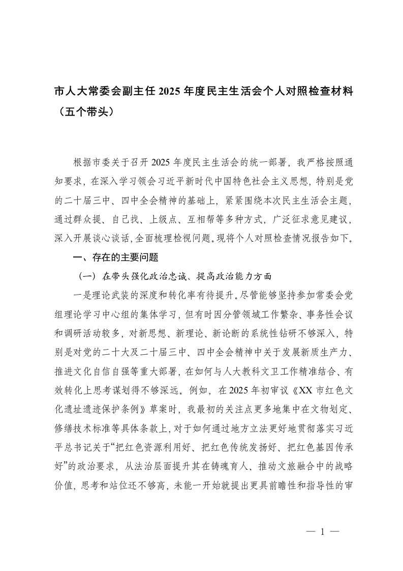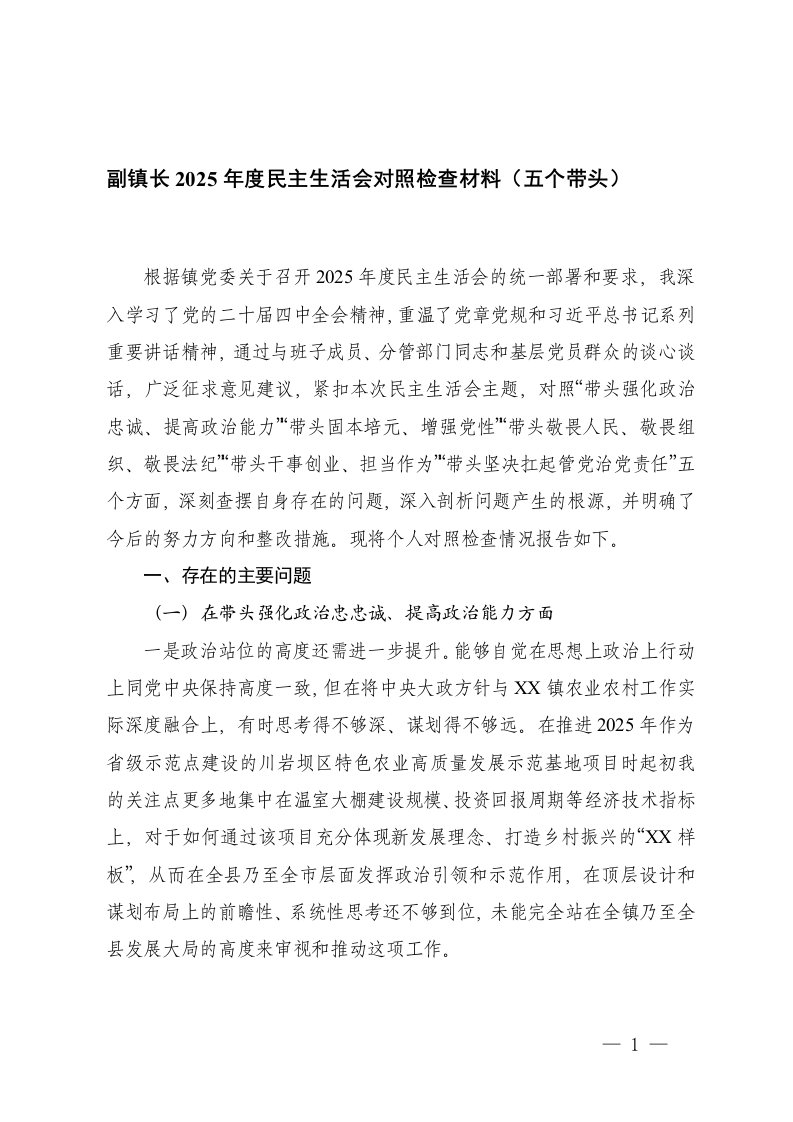 在带头强化政治忠诚提高政治能力方面五个带头民主生活会,对照检查