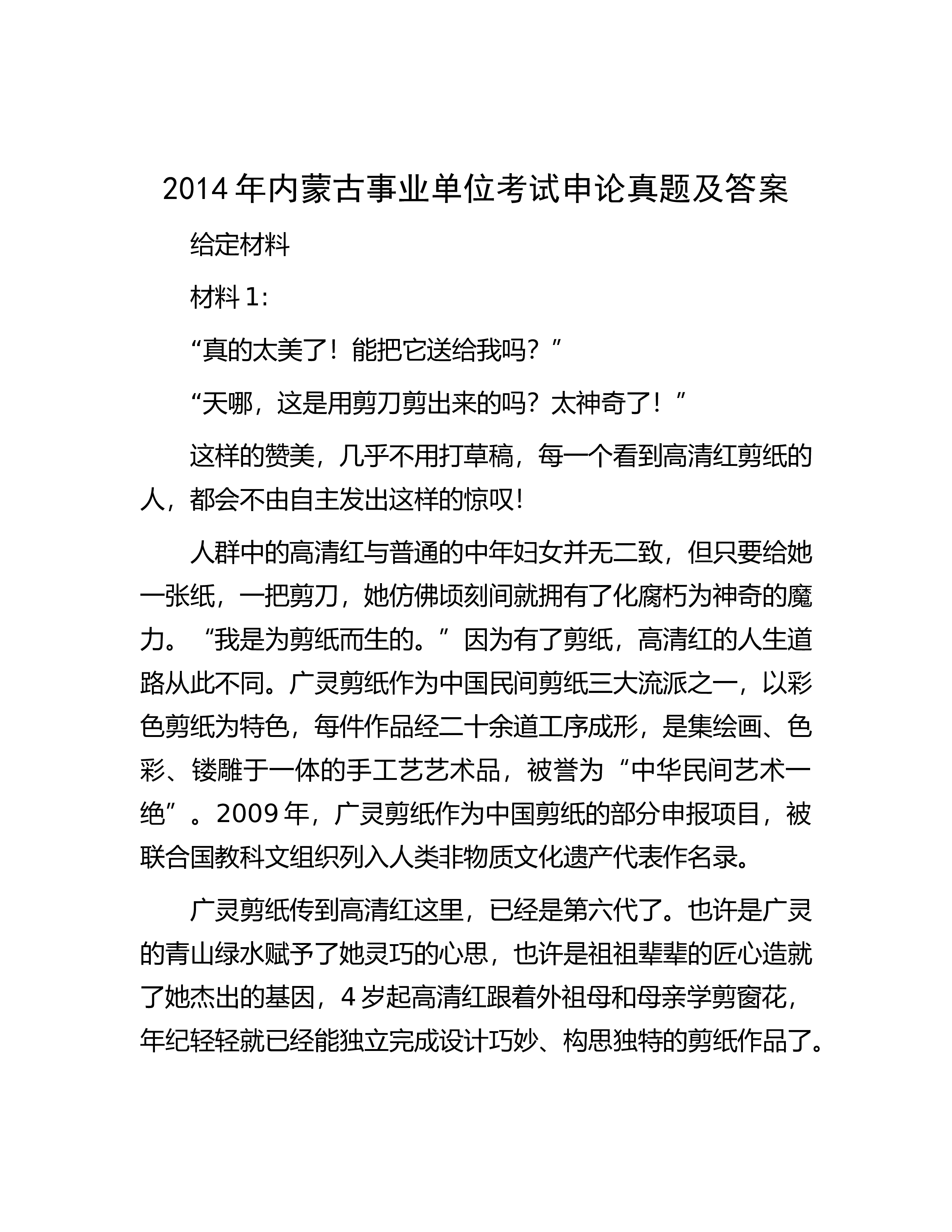 2015年宁夏事业单位考试申论真题及答案