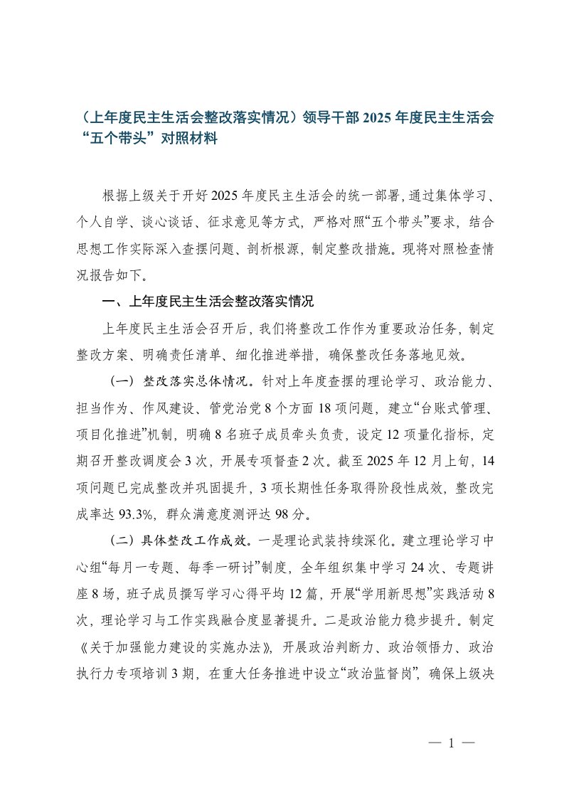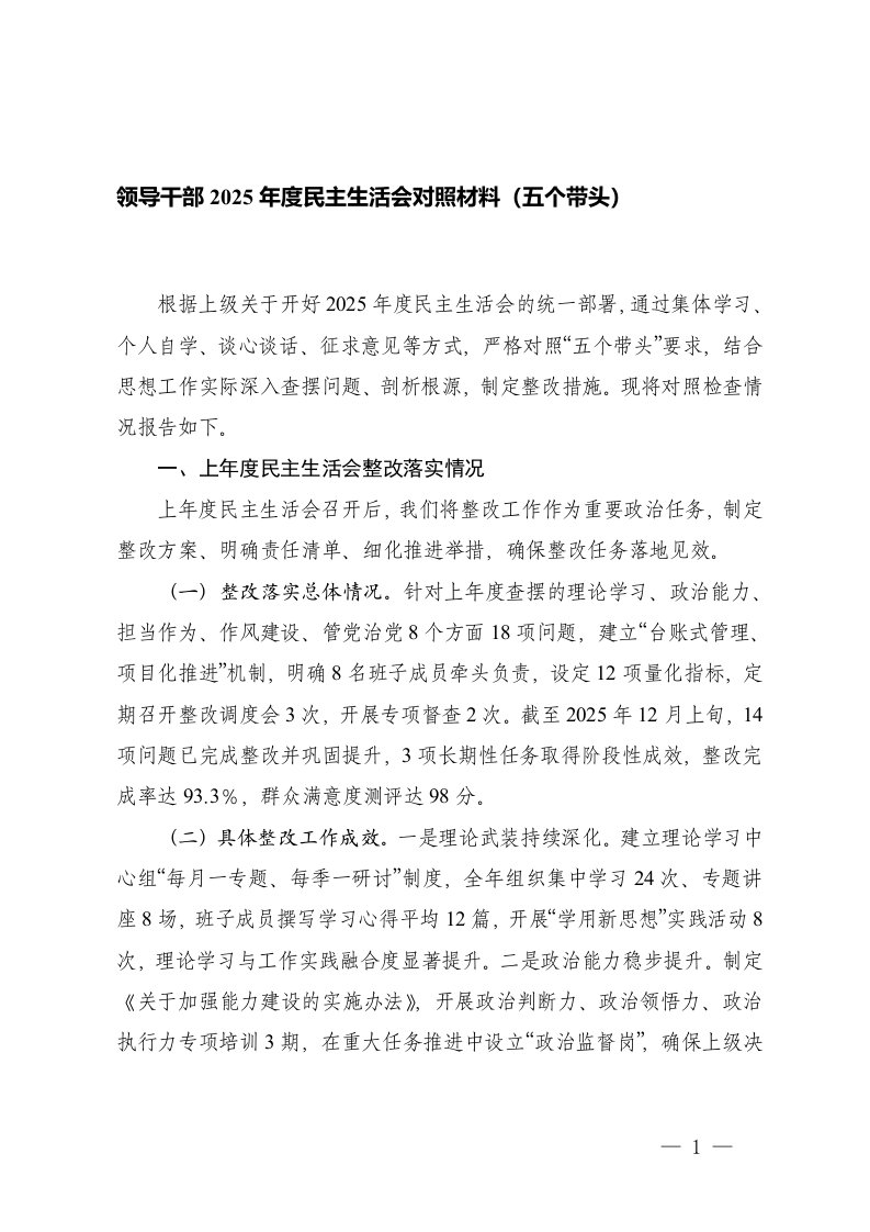 五个带头民主生活会,五个带头,领导干部,生活,对照