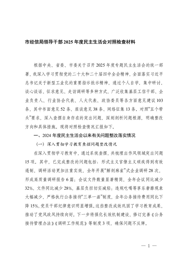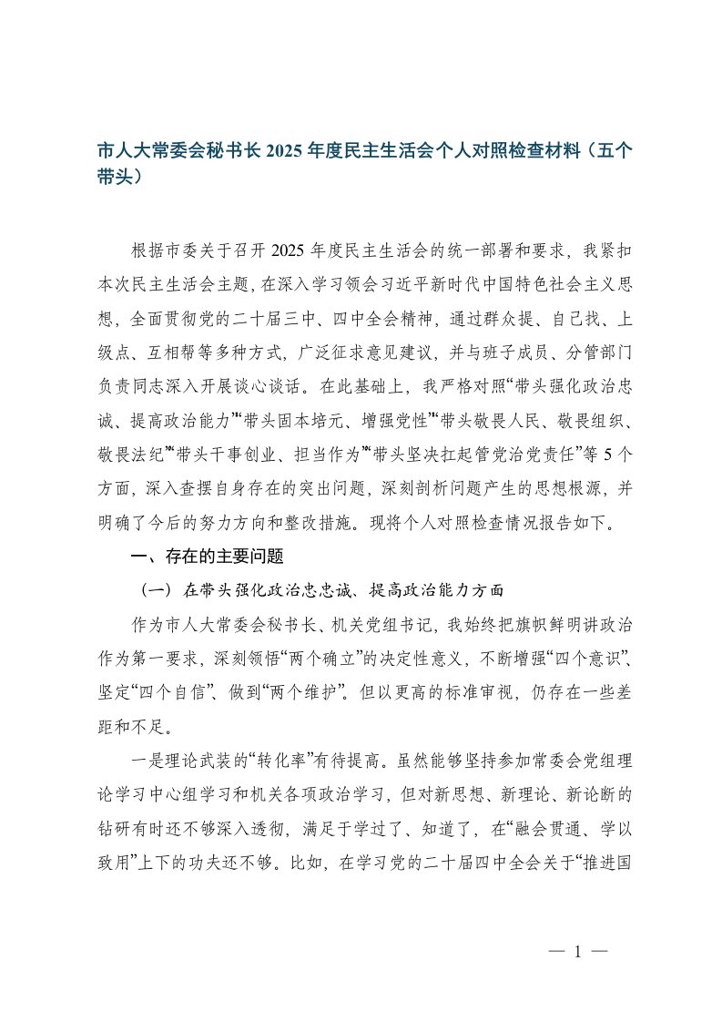 社会工作部部长2025年度专题民主生活会五个带头对照检查发言