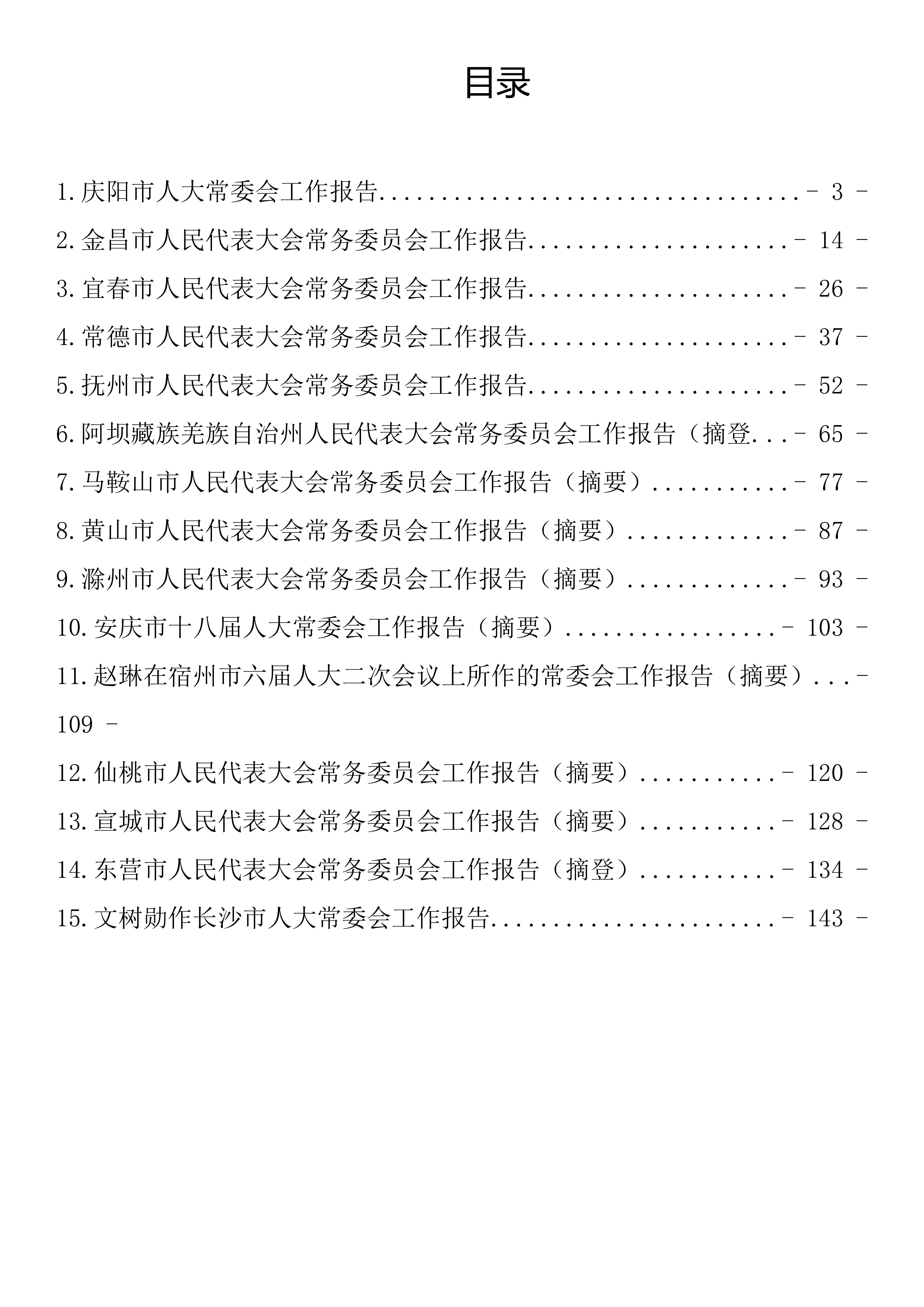 目录1.庆阳市人大常委会工作报告..................................-3-2.金昌市人民代表大会常务委员会工作报告.....................-14-3.宜春市人民代表大会常务委员会工作报告.....................-26-4.常德市人民代表大会常务委员会工作报告.....................-37-5.抚州市人民代表大会常务委员会工作报告.....................-52-6.阿坝藏族羌族自治州人民代表大会常务委员会工作报告(摘登...-65-7.马鞍山市人民代表大会常务委员会工作报告(摘要).........