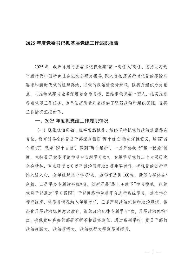工作,支部书记,述职党组书记党支部书记2025年度抓基层