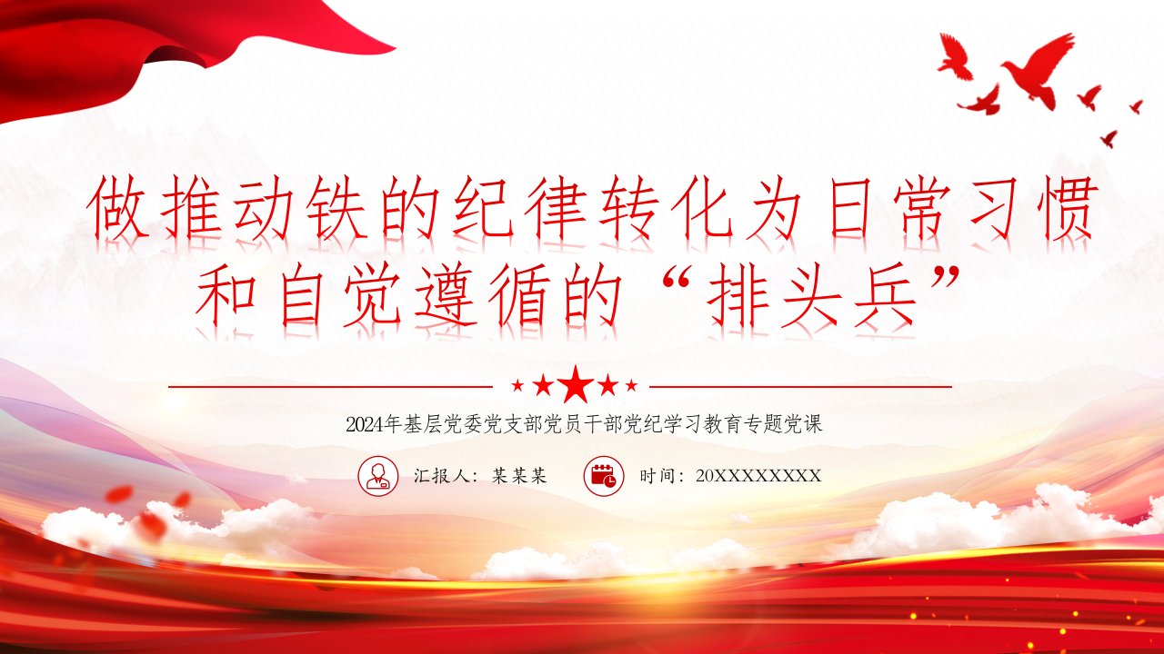2024微党课紧扣政治纪律,做到忠心向党“六个紧扣”推动党纪学习教育党课ppt模板(带内容)讲党课ppt模板下载