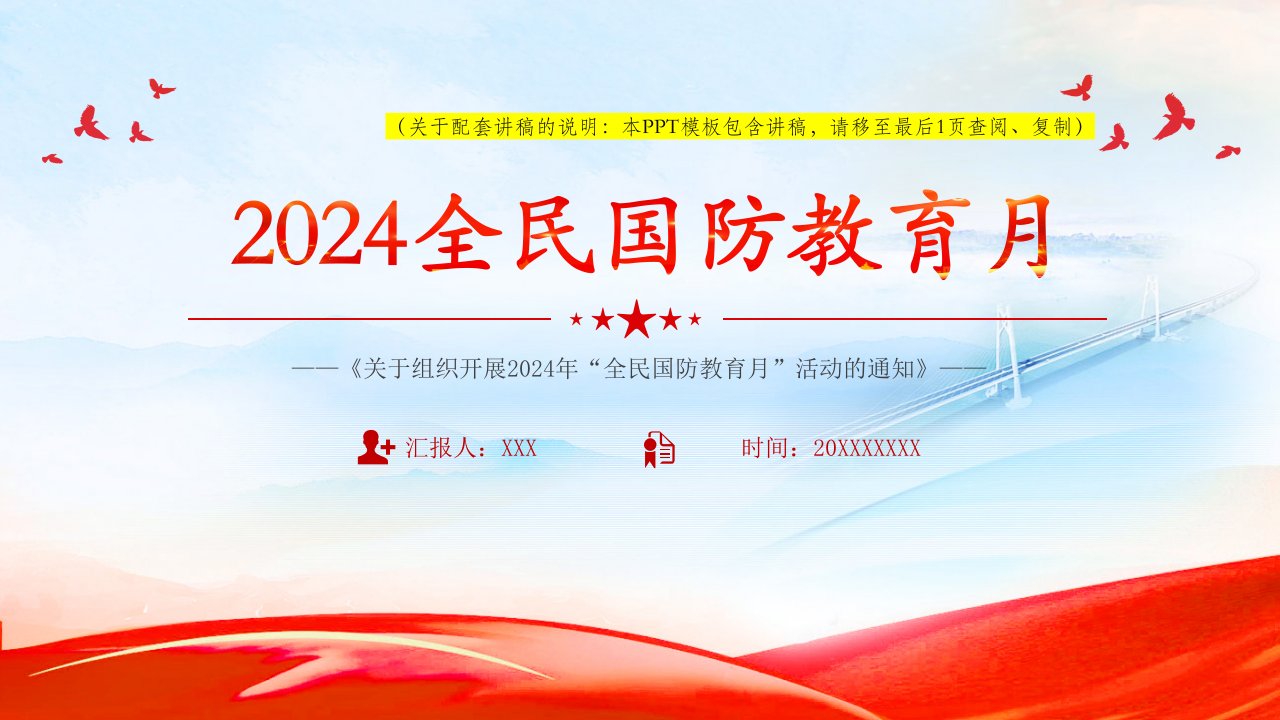 模板,教育,党课,国防教育,ppt模板2024微党课全民国防教育月