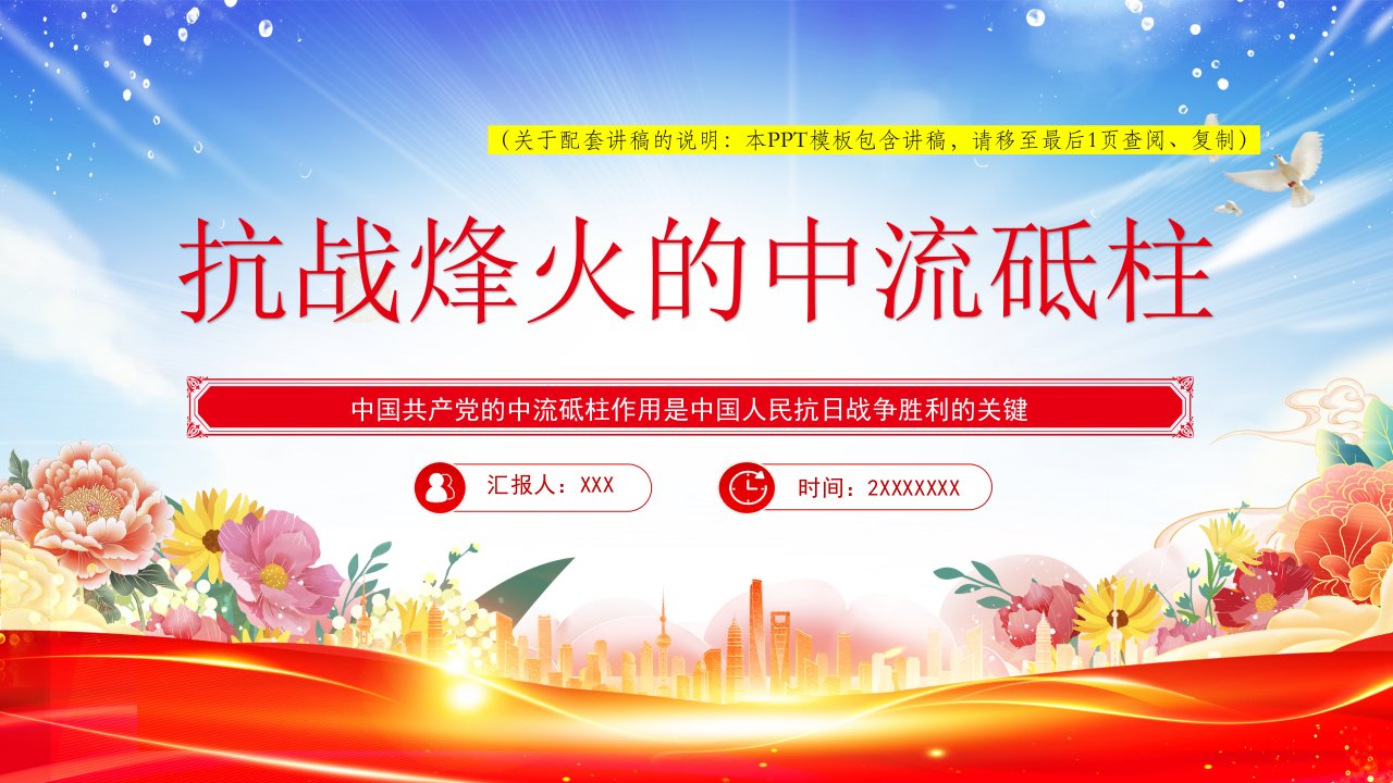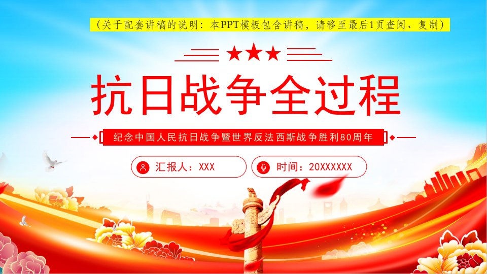 「抗战胜利ppt模板」9.3抗战胜利纪念日大阅兵纪念中国人民抗日战争暨世界反法西斯战争胜利80周年党课ppt模板(带内容)