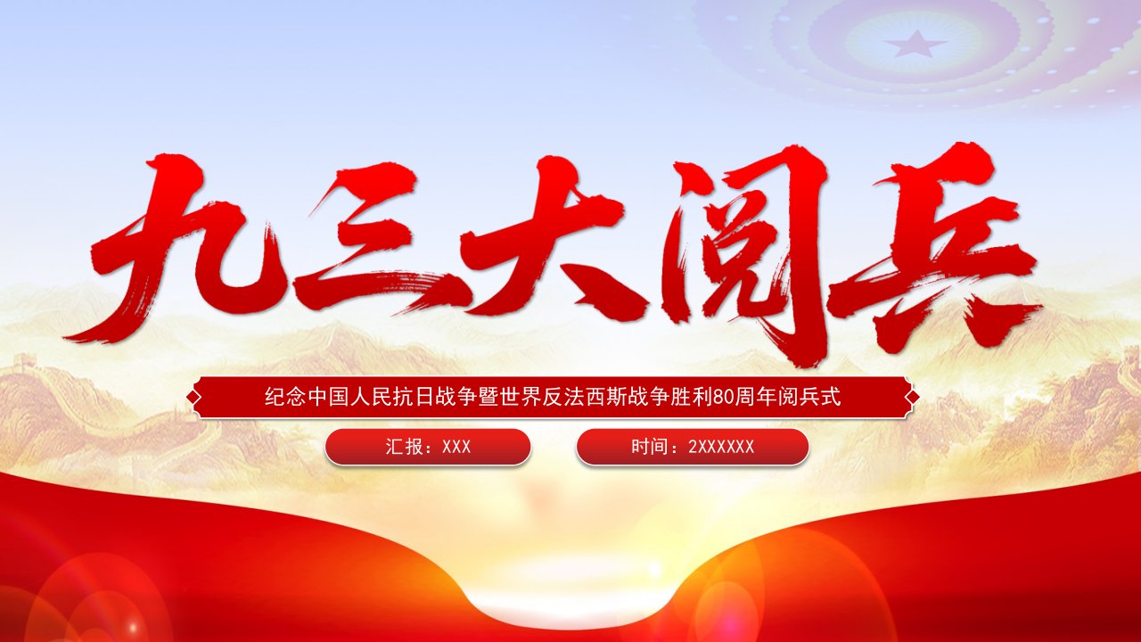 「九三大阅兵ppt」9.3纪念中国人民抗日战争暨世界反法西斯战争胜利80周年阅兵党课ppt模板(带内容)