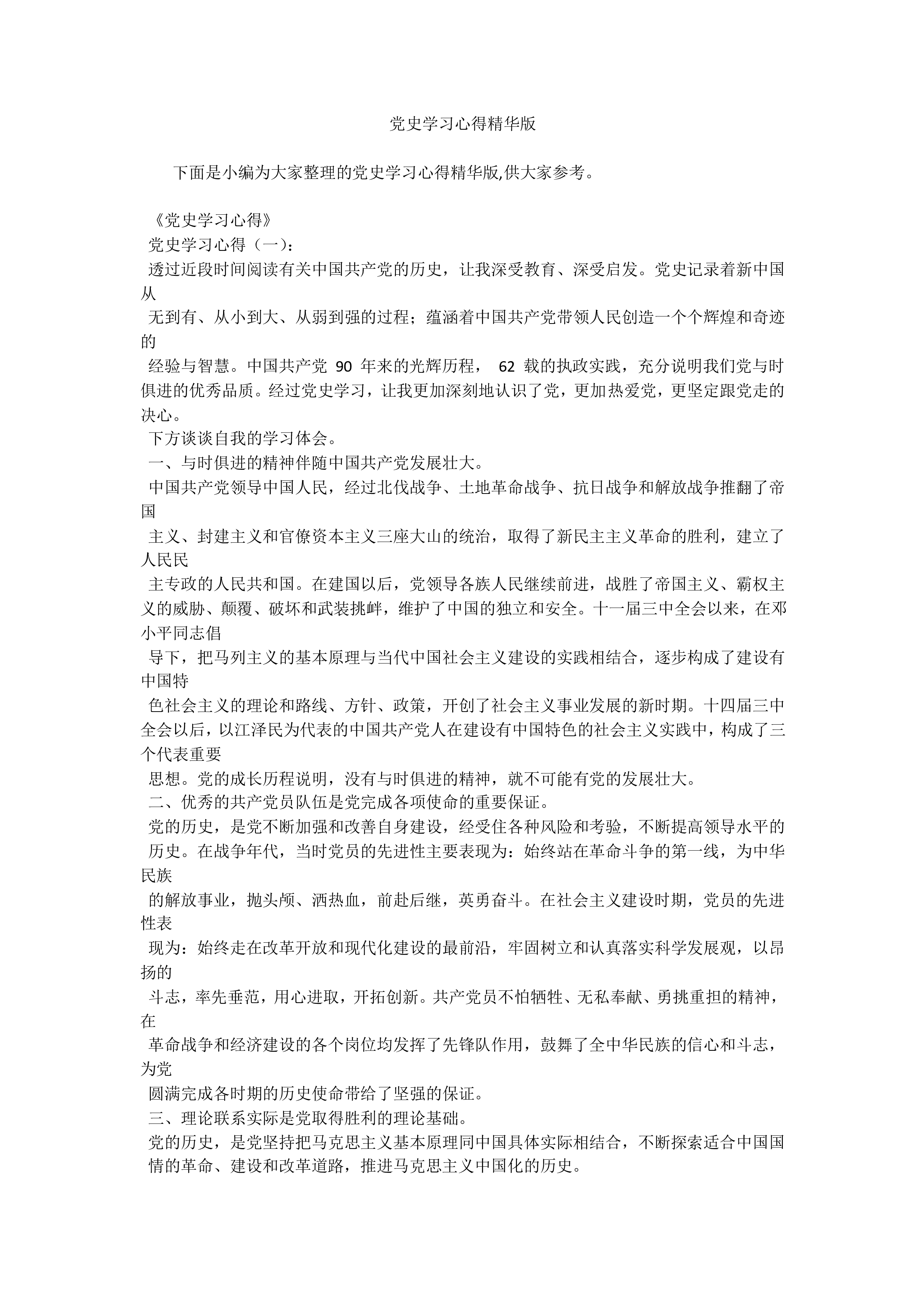 党史学习心得精华版下面是小编为大家整理的党史学习心得精华版,供大家参考。《党史学习心得》党史学习心得(一):透过近段时间阅读有关中国共产党的历史,让我深受教育、深受启发。党史记录着新中国从无到有、从小到大、从弱到强的过程;蕴涵着中国共产党带领人民创造一个个辉煌和奇迹的经验与智慧。中国共产党90年来的光辉历程,62载的执政实践,充分说明我们党与时俱进的优秀品质。经过党史学习,让我更加深刻地认识了党,更加热爱党,更坚定跟党走的决心。下方谈谈自我的学习体会。一、与时俱进的精神伴随中国共产党发展壮大。中国共产党领导中国人民,经过北伐战争、土地革命战争、抗日战争和解放战争推翻了帝国主义、封建主义和官僚资...