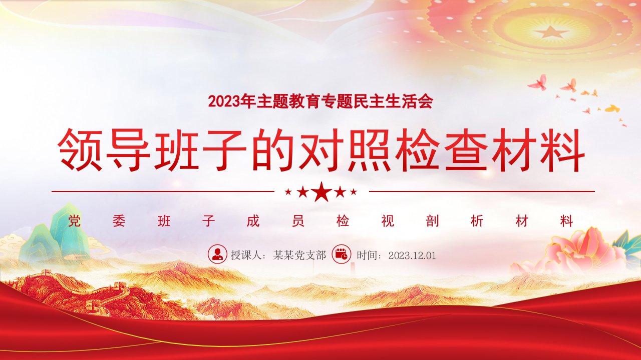 2024微党课2023年主T教育专题民主生活会党课ppt模板(带内容)党委班子成员检视剖析材料课件下载