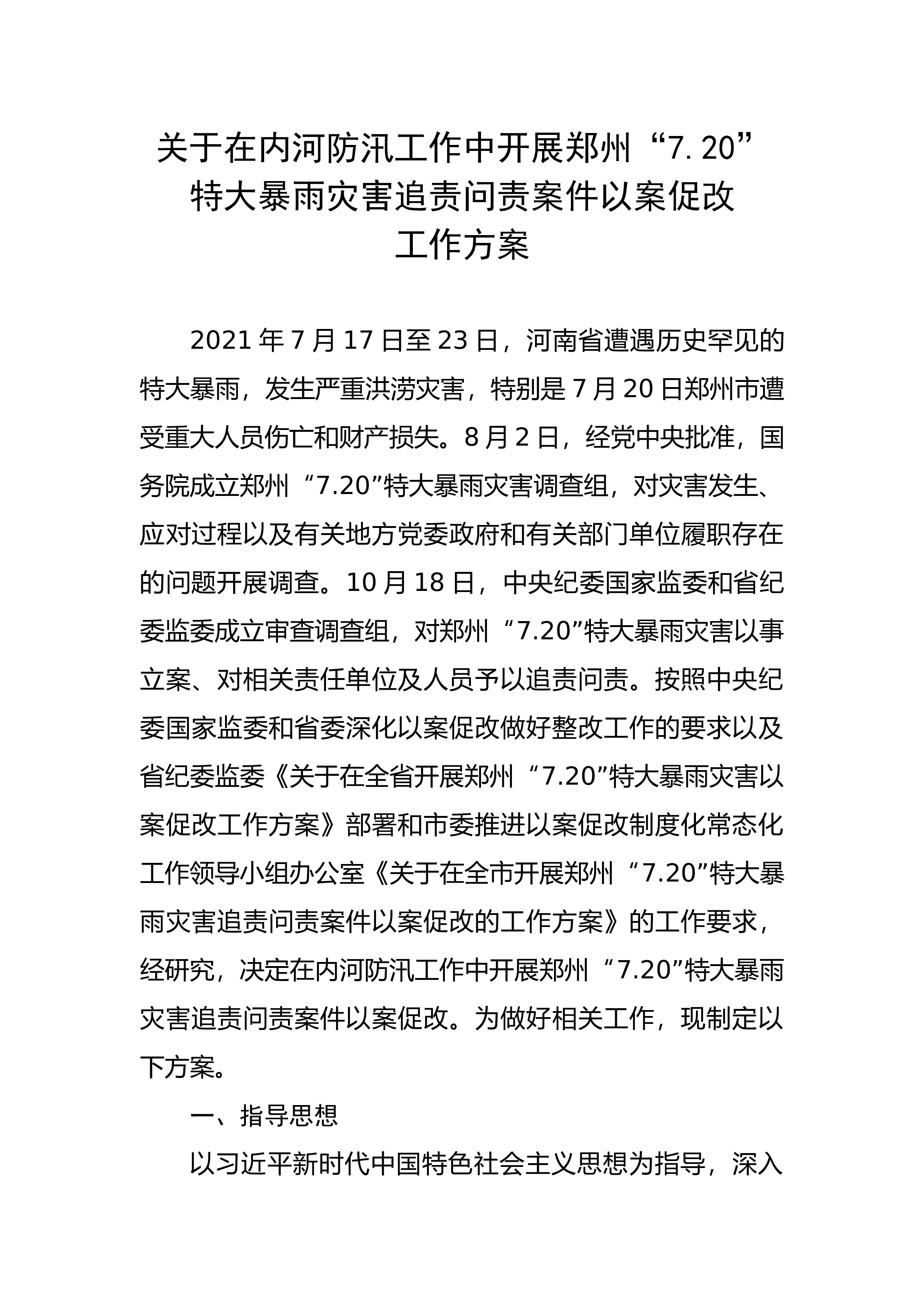 【工作方案】关于在内河防汛工作中开展郑州“7.20”特大暴雨灾害追责问责案件以案促改工作方案