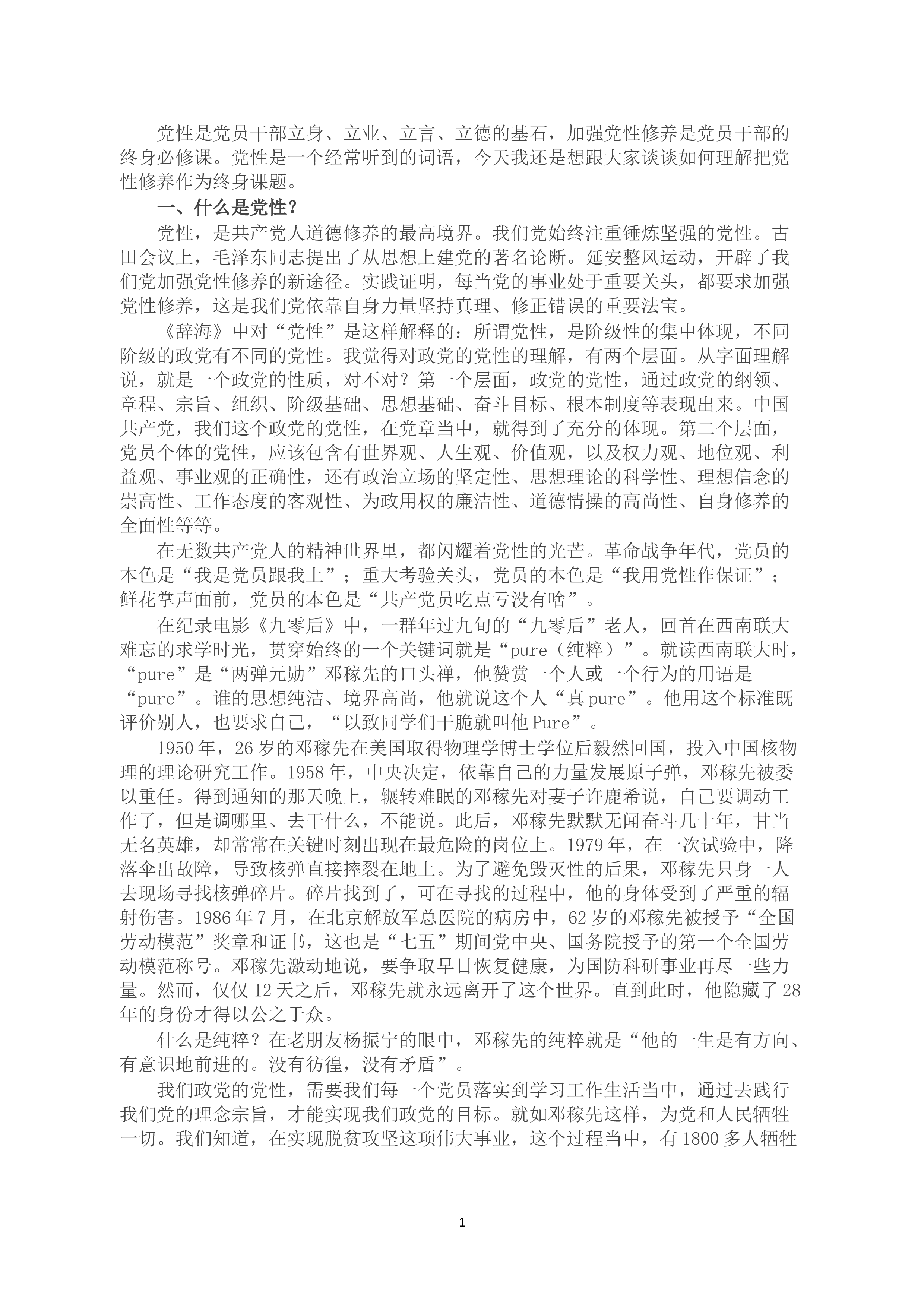 廉政党课:强党性修养守纪律规矩 永葆清正廉洁政治本色