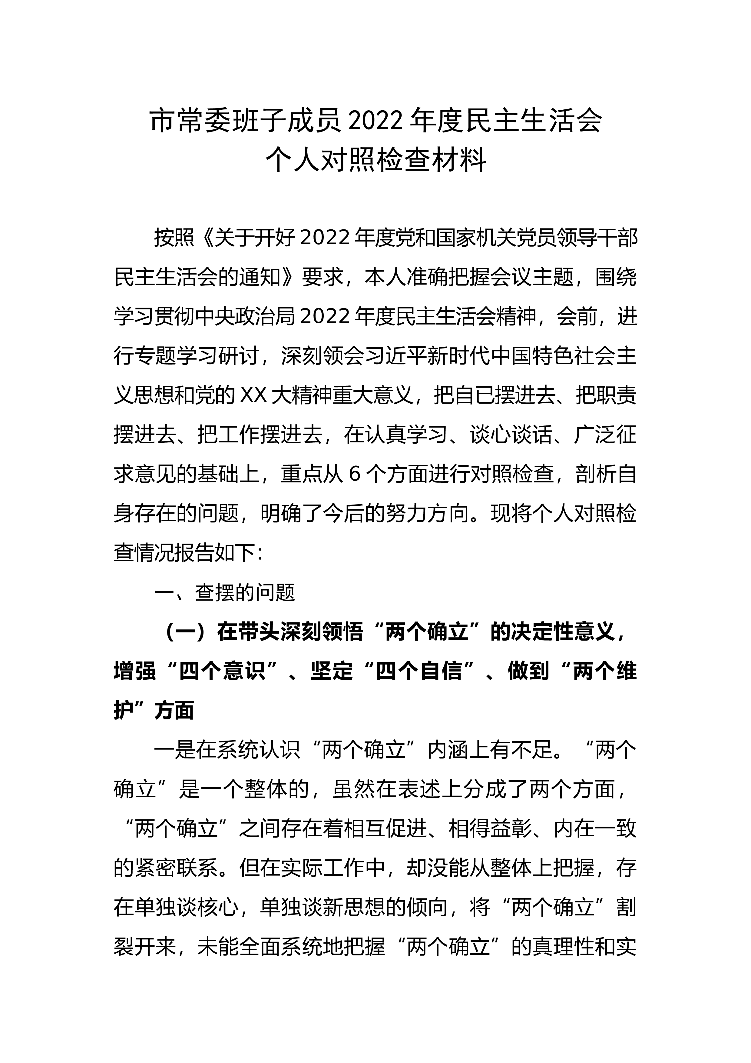 【民主生活会】市税务局领导班子2022年民主生活会“六个带头”对照检查材料