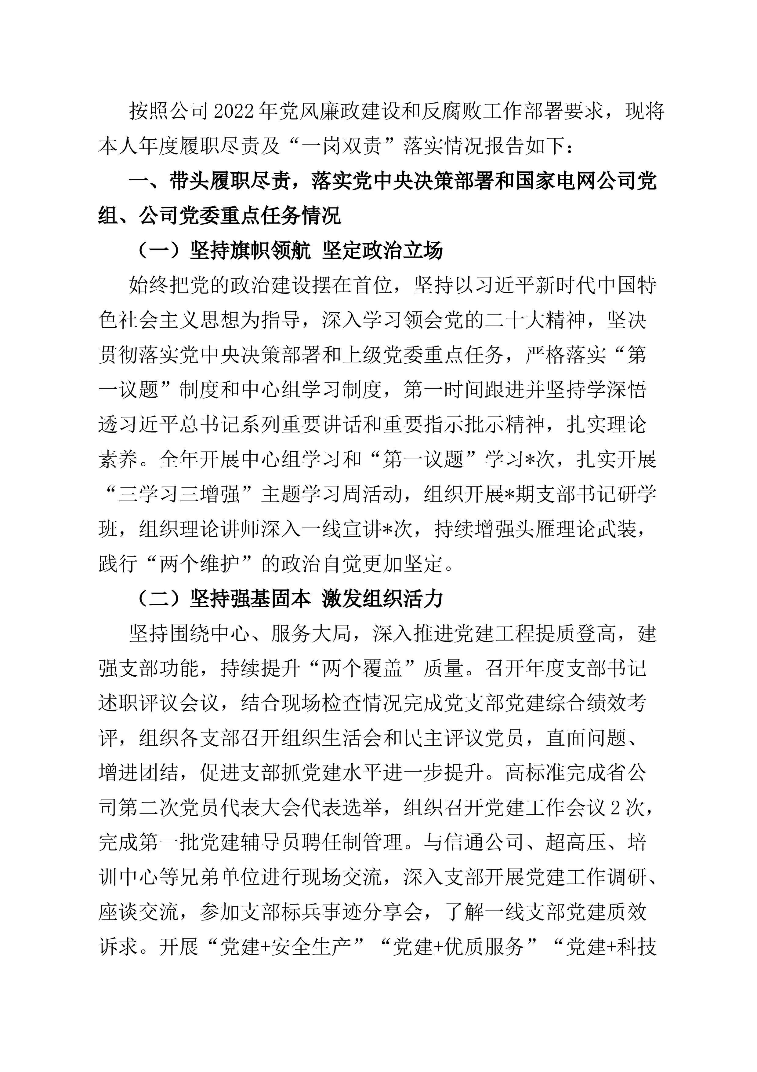 区委2022年落实全面从严治党主体责任情况报告
