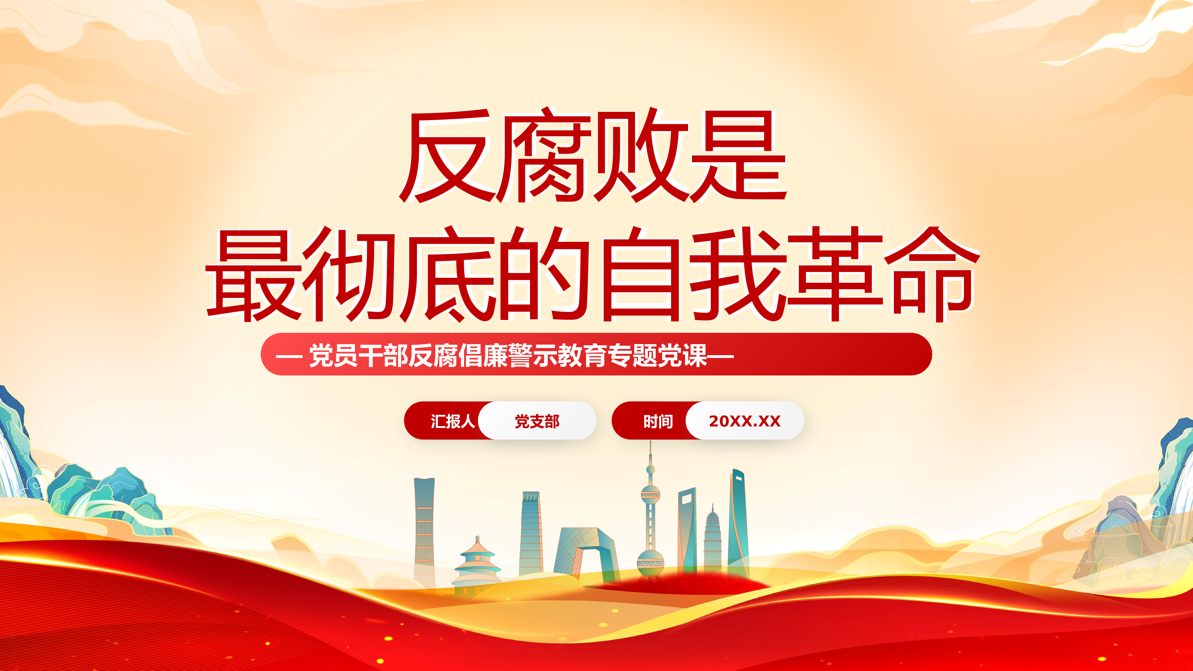 倡廉警示教育专题党课ppt模板(带内容)党支部党课ppt模板下载