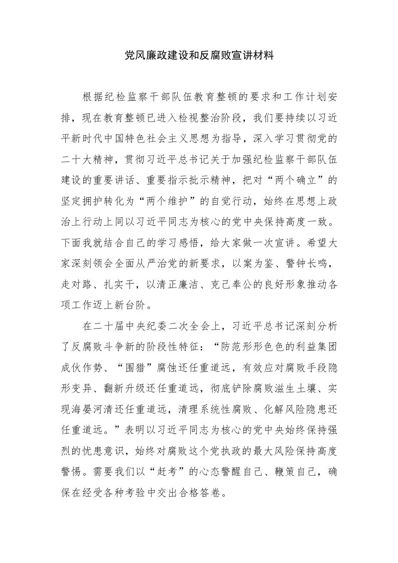 败宣讲材料廉政,党风廉政建设,