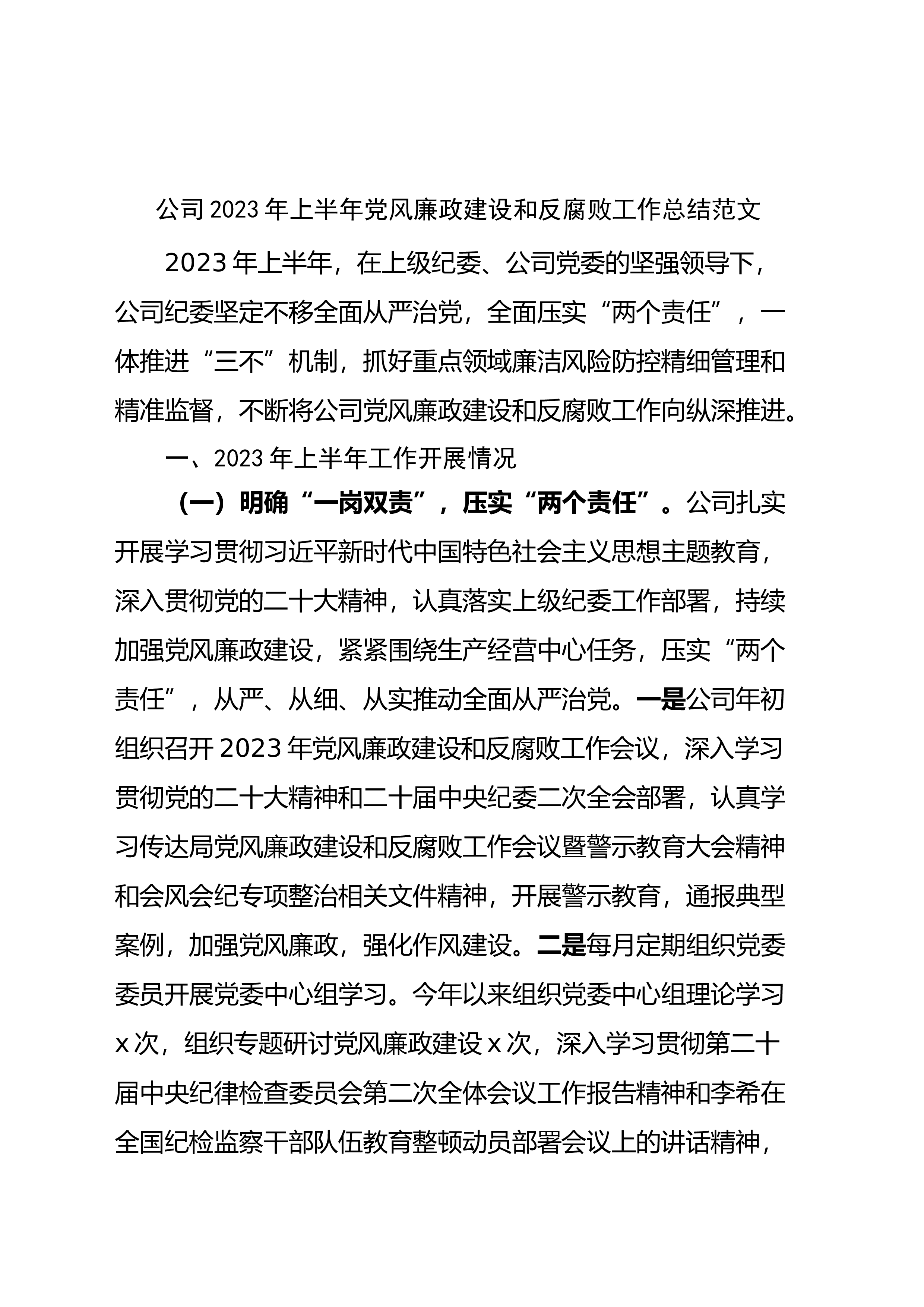 公司2023年上半年党风廉政建设和反腐败工作总结