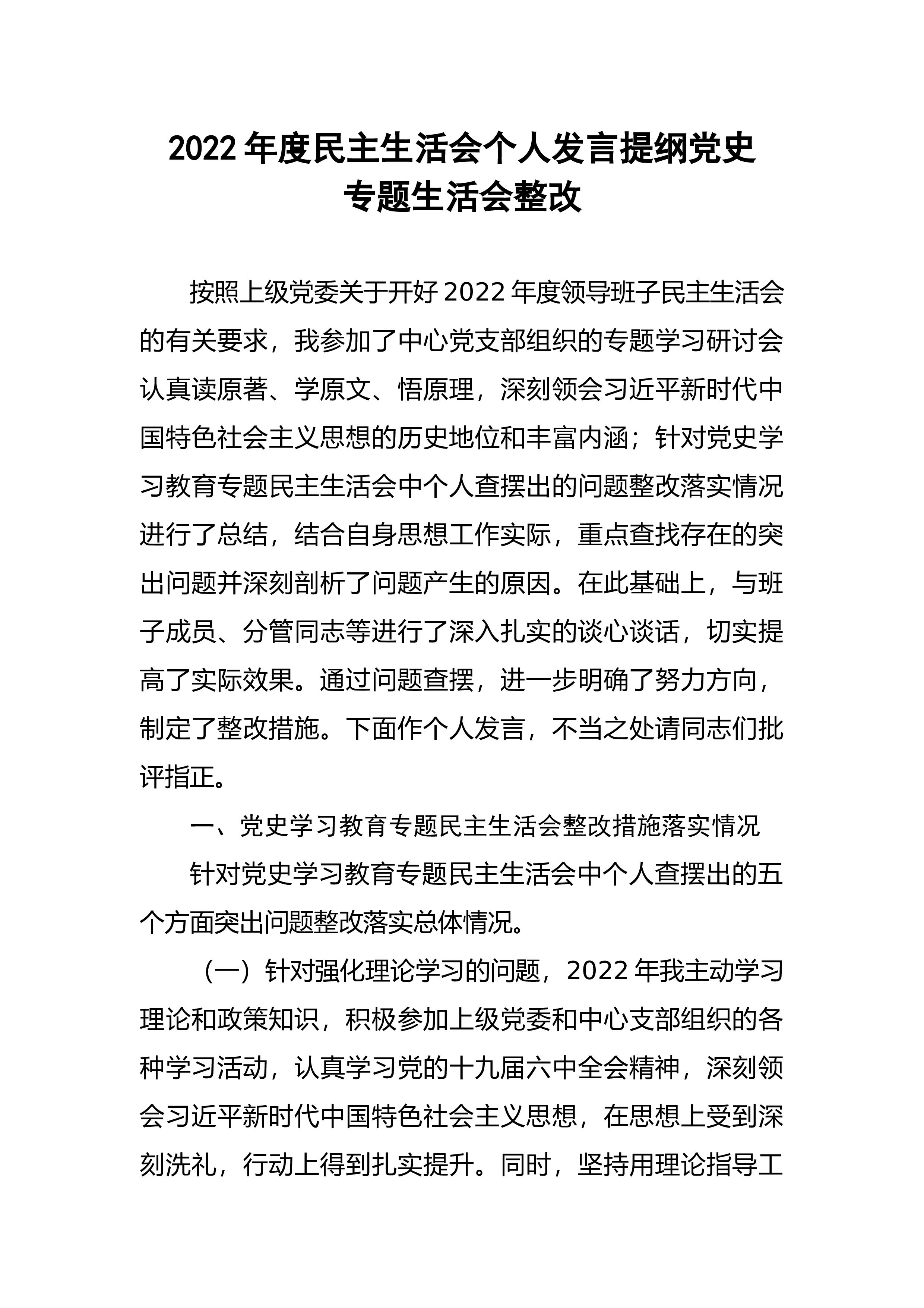 【国资国企】国企党委书记2022年度领导班子民主生活会个人发言提纲(六个带头)