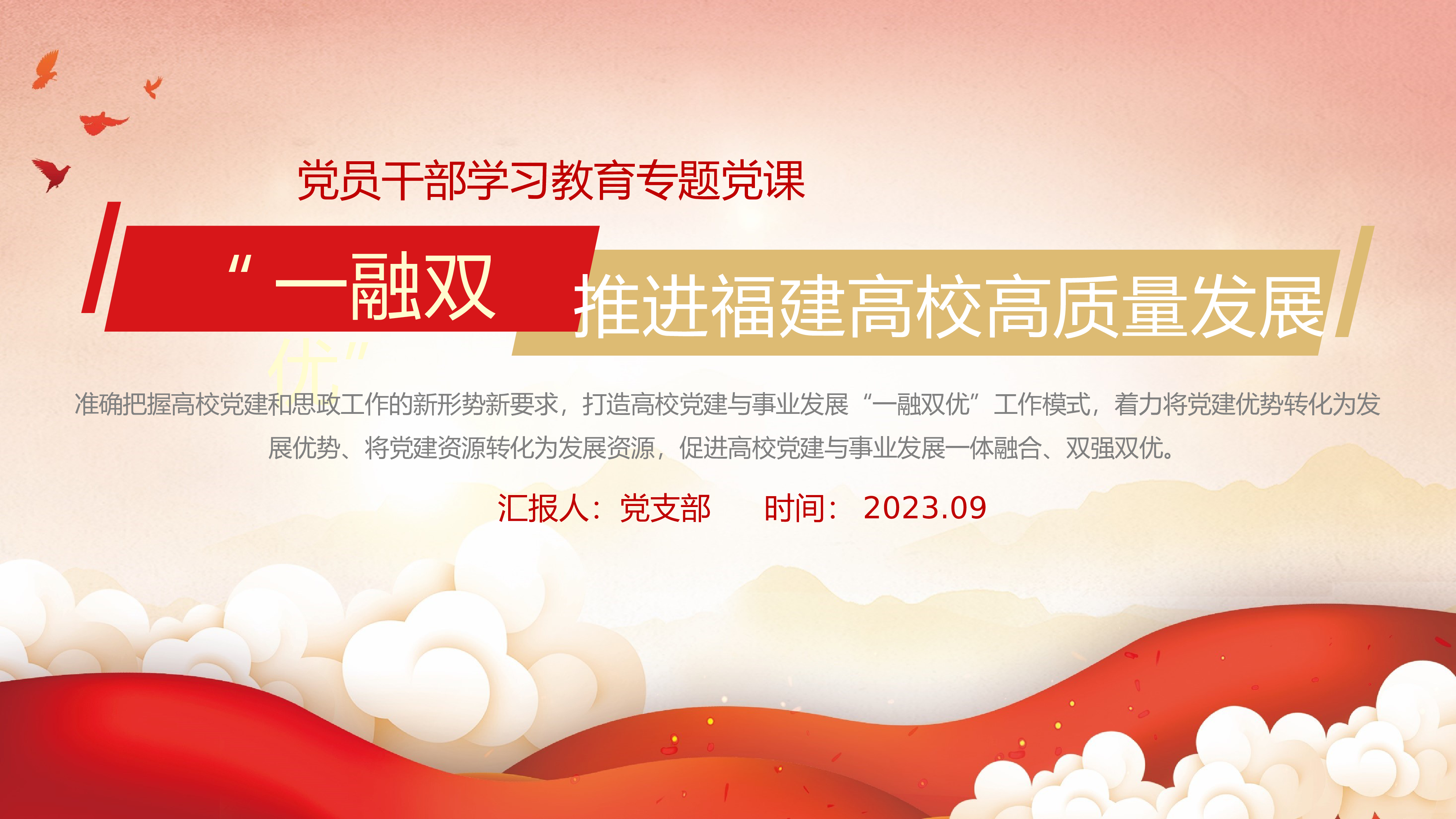 强化“马院”职能定位建好“大思政课”日期:2023.10汇报:党支部加强新时代马克思主义学院建设,为党育人、为国育才党的十八大以来,党和国家高度重视马克思主义学院建设,出台《关于加强新时代马克思主义学院建设的意见》等文件,将学院功能定位置于“为党育人、为国育才”立德树人根本任务中统筹谋划,指引马克思主义学院高质量发展。当前,十部门联合印发的《全面推进“大思政课”建设的工作方案》在全国高校深入落实,“大思政课”成为高校思政课改革创新的新形态,马克思主义学院进入加强主阵地建设、发挥主渠道作用的新发展阶段。高校围绕如何构建“大思政课”,基于如何建设“大课堂”、搭建“大平台”、建好“大师资”等工作任务...