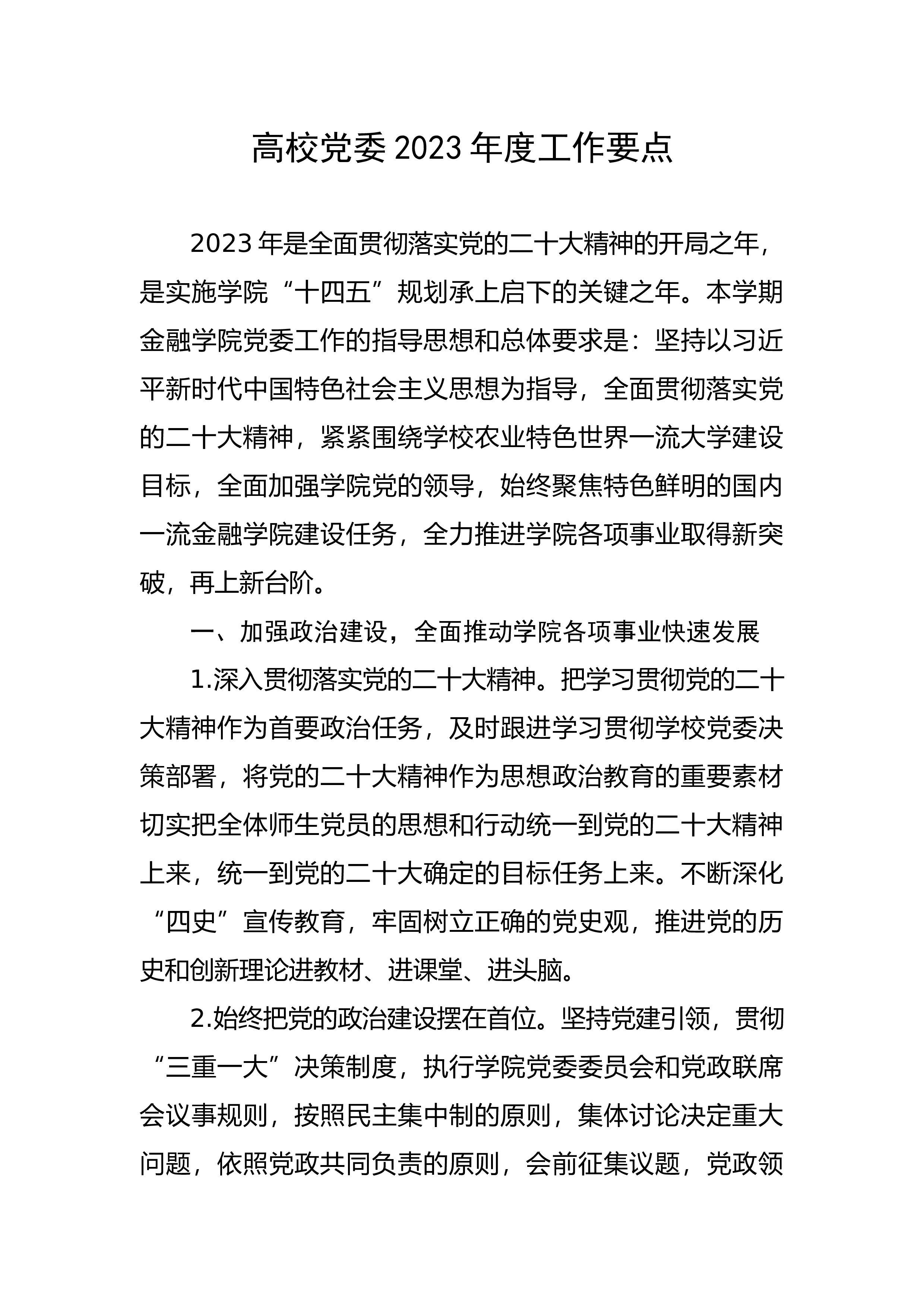 高校领导班子2023年度述职报告2023年,学校党委深入学习贯彻习近平新时代中国特色社会主义思想和党的二十大精神,认真落实党和国家关于深化现代职业教育体系建设改革的一系列政策文件,深化改革创新,锚定学校“十四五”发展目标,以高质量党建为引领,以立德树人为根本,以产教融合为驱动,以科教融汇为新方向,以高素质人才为关键,以高效能治理为支撑,按照“党建统领、成果导向、改革创新、融合发展”的建设思路,强力推进“一加强四打造五提升”十大项目建设,产生了一批标志性成果,促进了人才培养质量提高,提升了学校综合办学实力,圆满完成了年度工作目标任务。学校荣获2022年度“省高校领导班子考核优秀”“市文明校园”“...