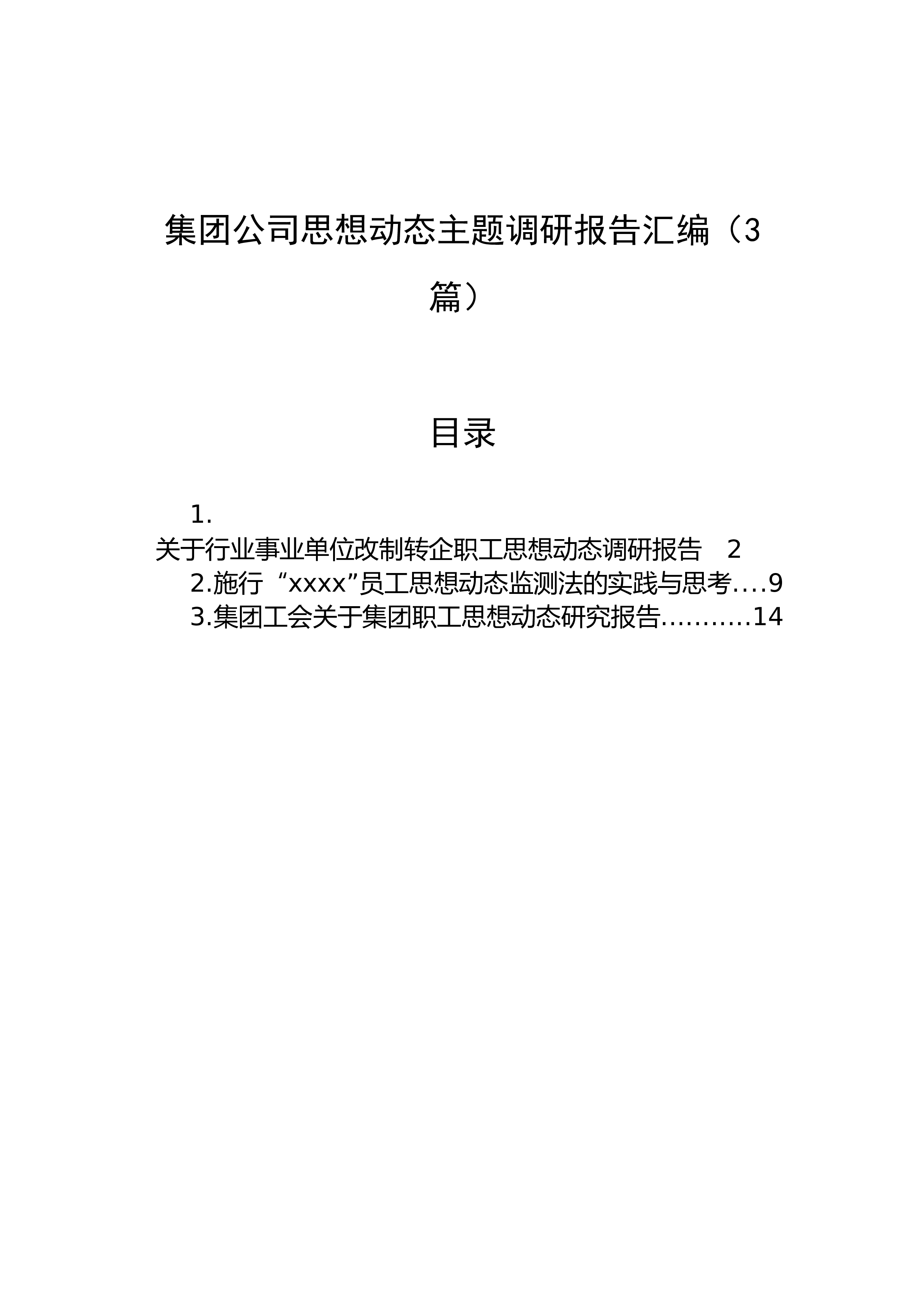 【国资国企】集团公司思想动态主题调研报告汇编(3篇)