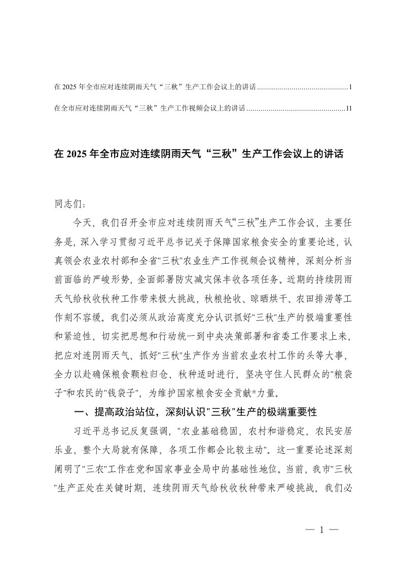 ,讲话,视频会议2025年在全市应对连续阴雨天气三秋生产