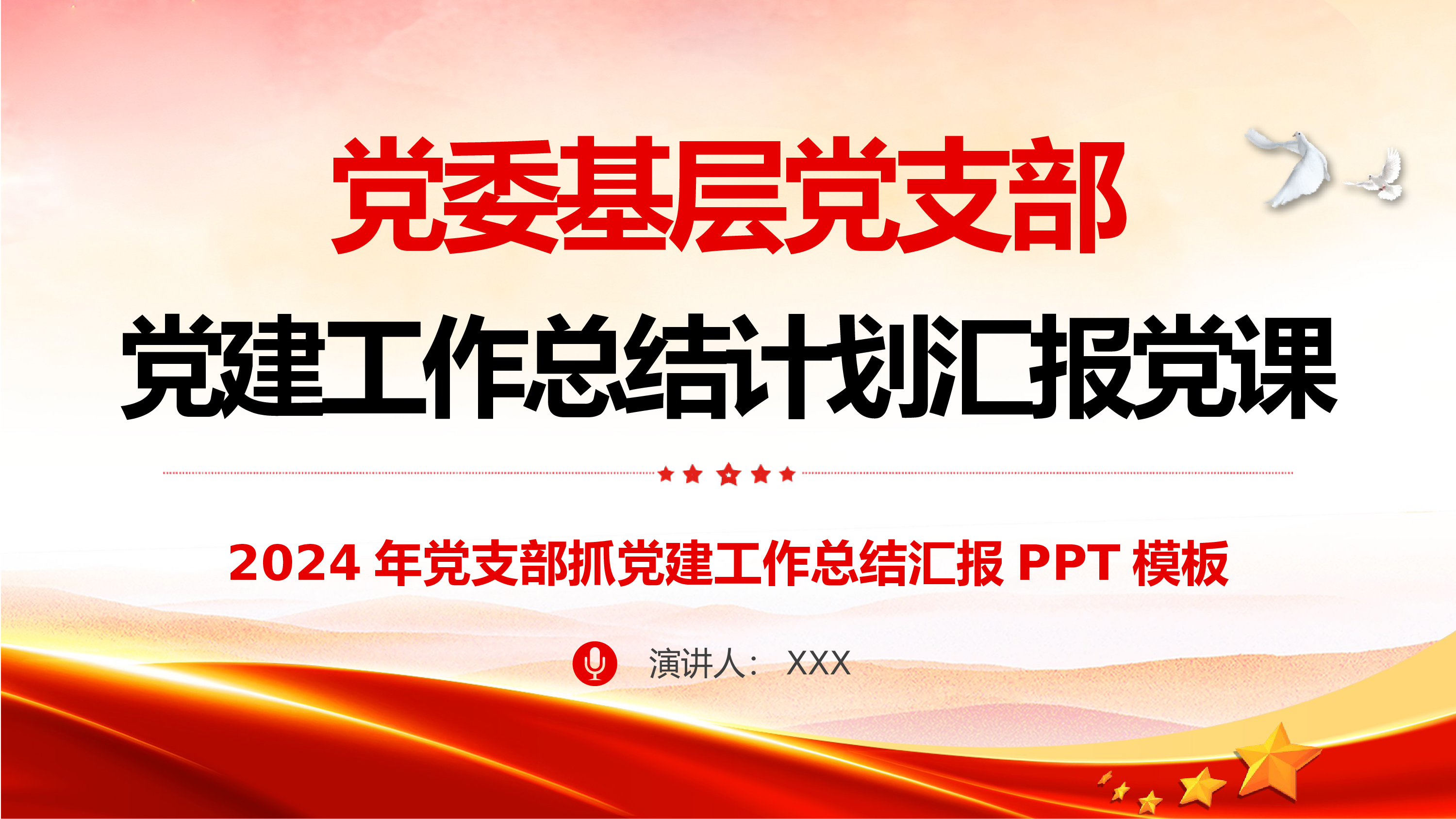 2024微党课党建工作党政党支部总结汇报述职ppt模板(带内容)党支部团支部党员干部学习党课课件