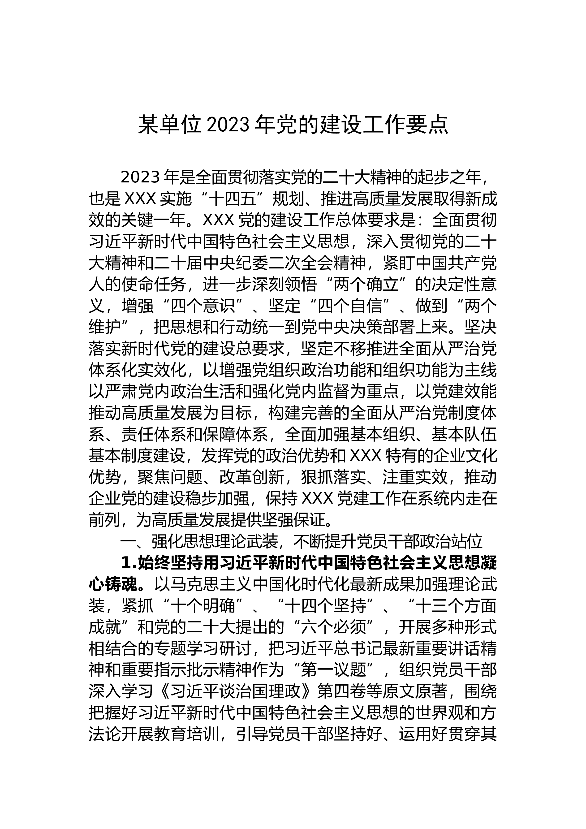 某单位2023年党的建设工作要点2023年是全面贯彻落实党的二十大精神的起步之年,也是XXX实施“十四五”