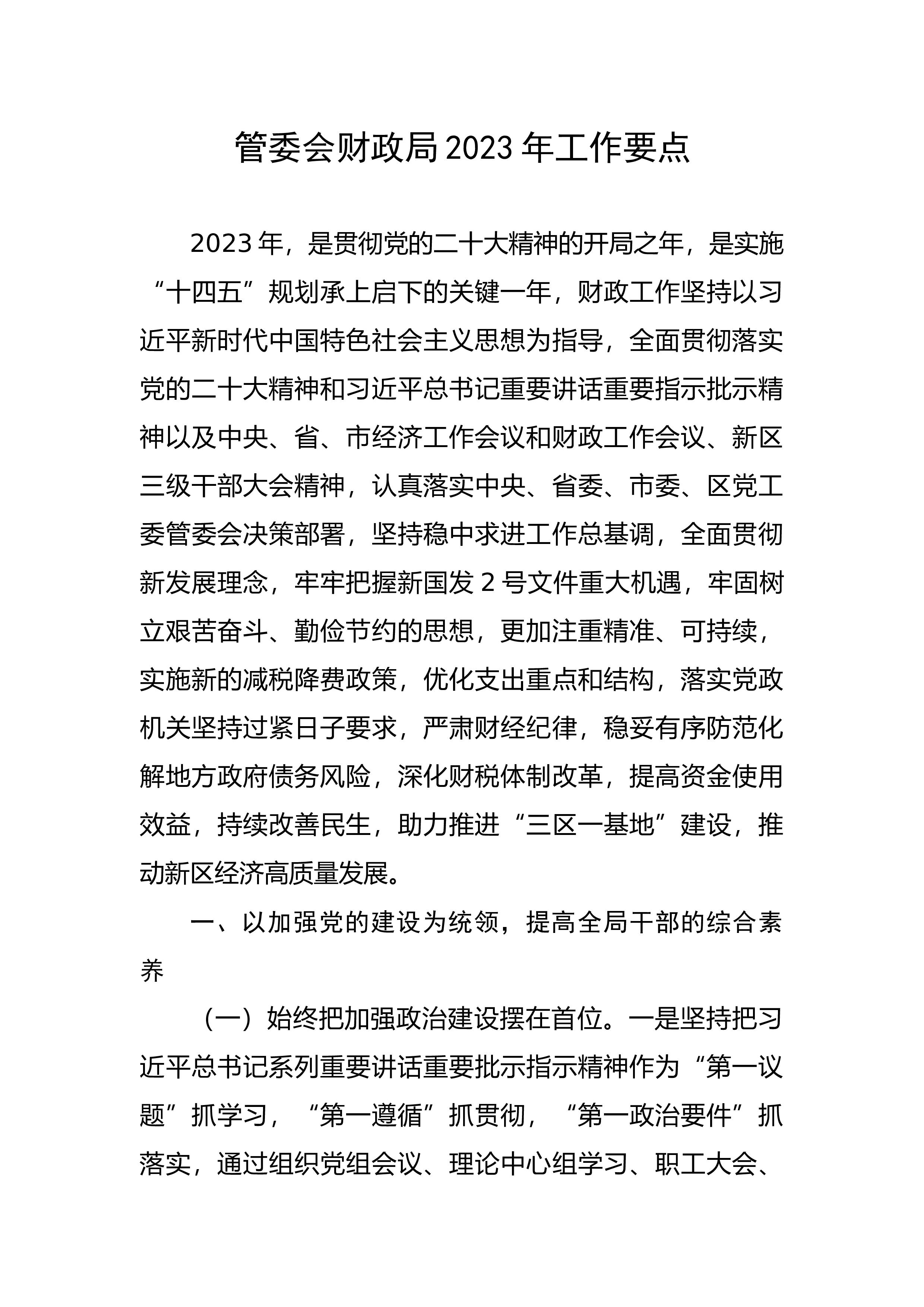 管委会财政局2023年工作要点2023年,是贯彻党的二十大精神的开局之年,是实施“十四五”