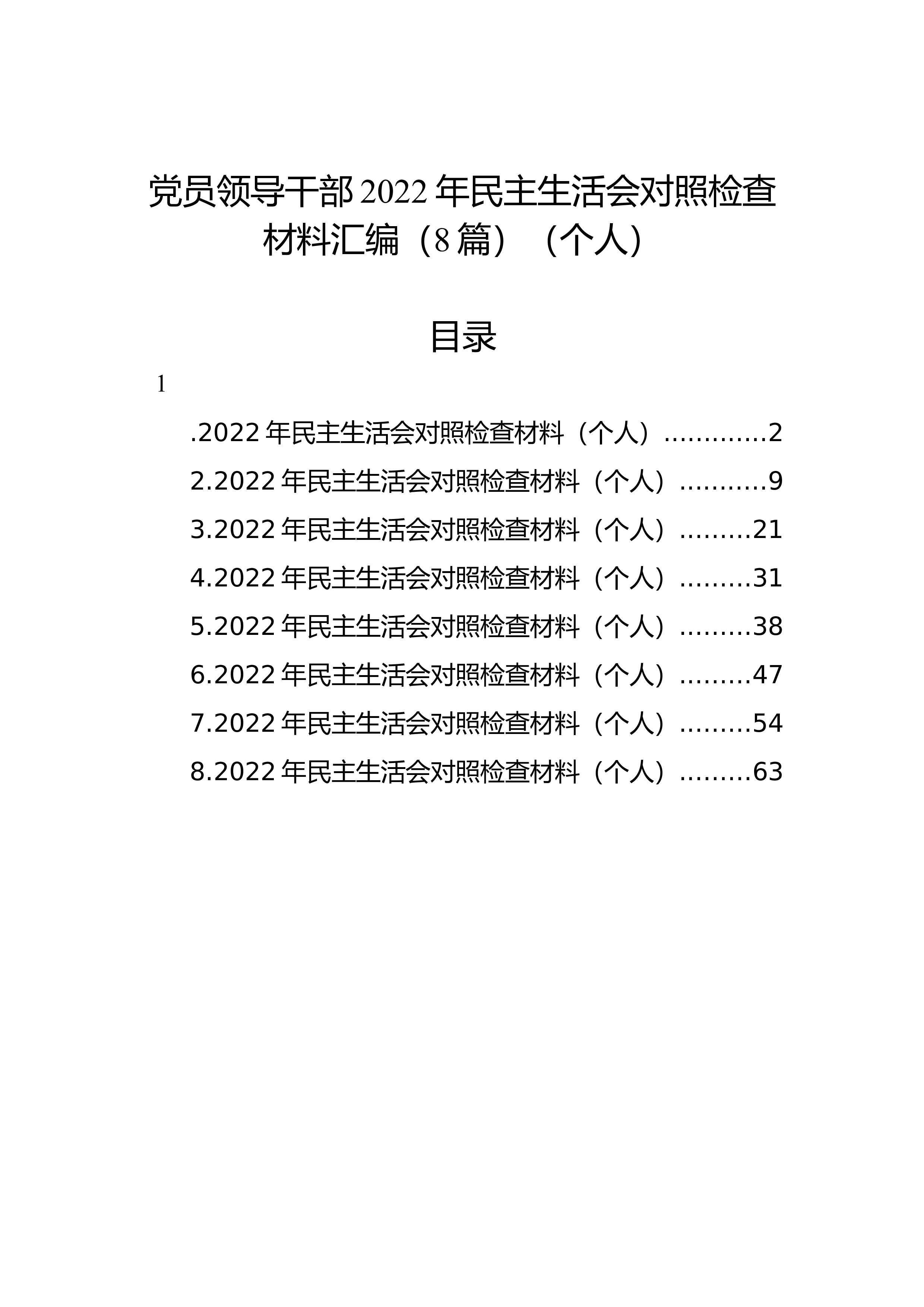 【民主生活会】单位一把手2022年度民主生活会个人对照检查材料汇编(11篇)