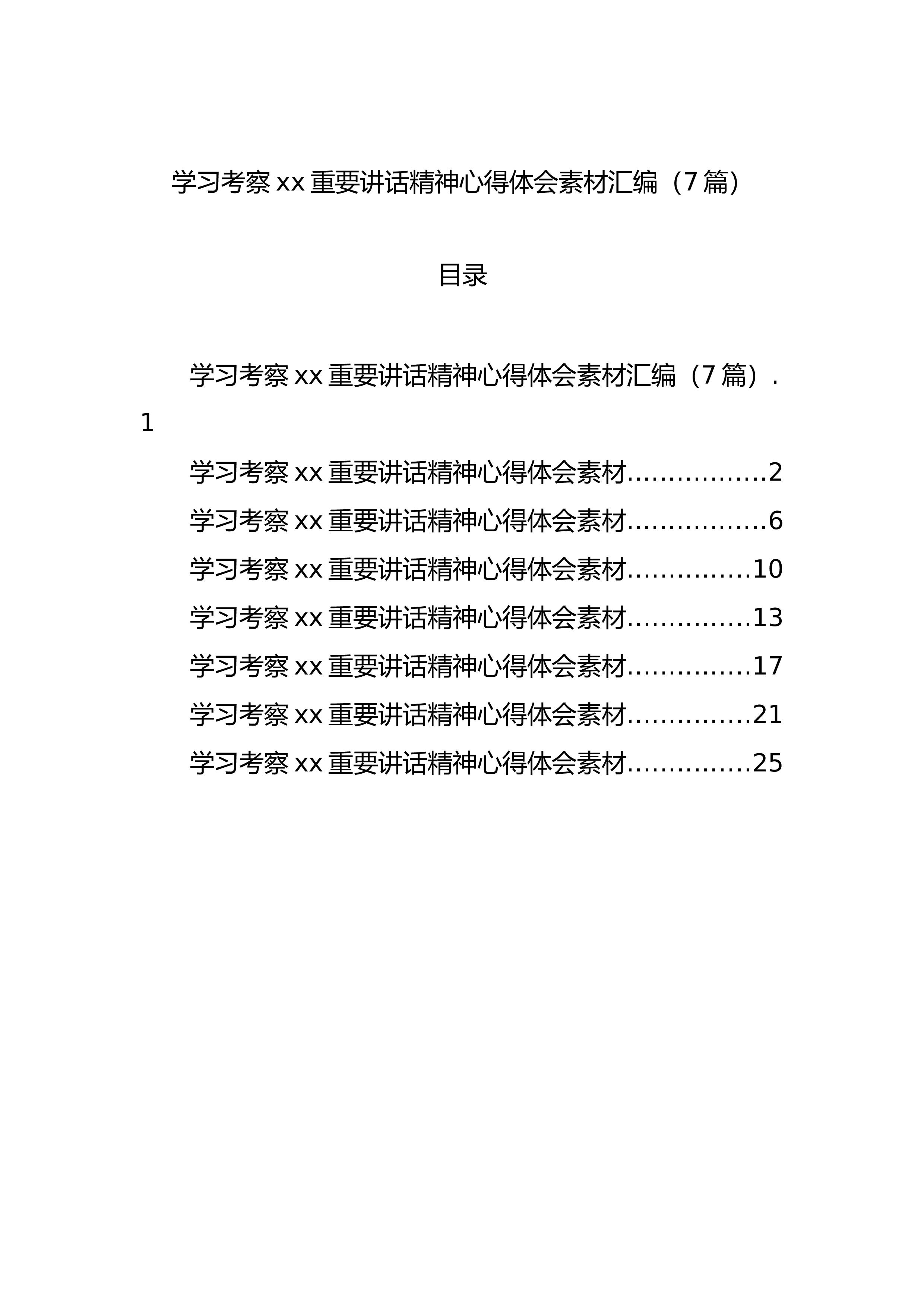 (7篇)目录学习考察xx重要讲话精神心得体会素材