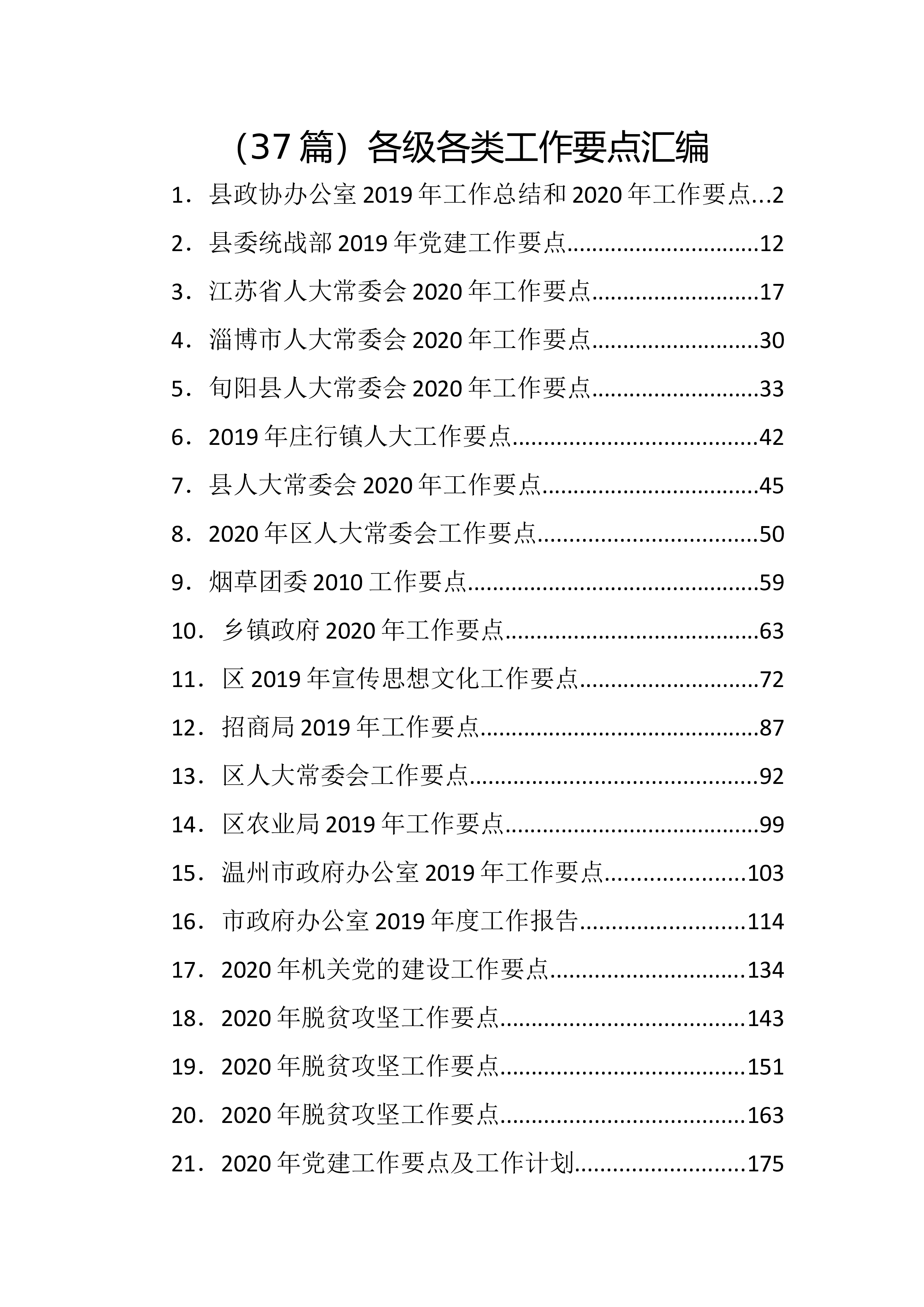 1.县政协办公室2019年工作总结和2020年工作要点...22.县委统战部2019年党建工作要点...............................123.江苏省人大常委会2020年工作要点...........................174.淄博市人大常委会2020年工作要点...........................305.旬阳县人大常委会2020年工作要点...........................336.2019年庄行镇人大工作要点.......................................427....