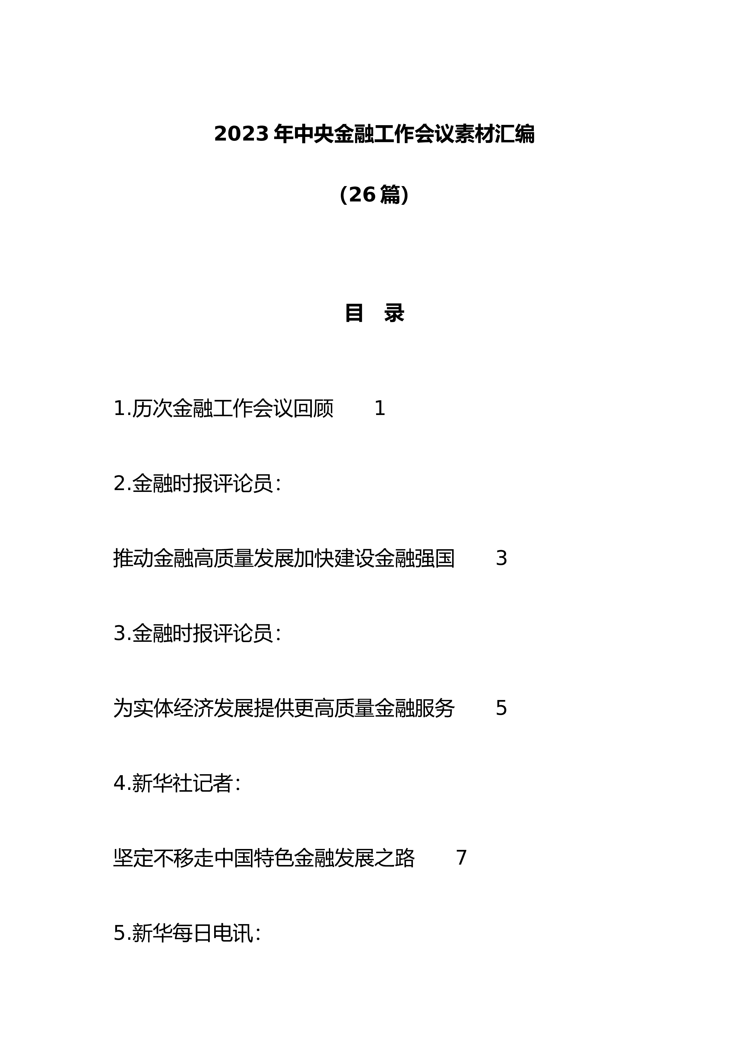 (26篇)目 录1.历次金融工作会议回顾 12.金融时报评论员:推动金融高质量发展加快建设金融强国 33.金融时报评论员:为实体经济发展提供更高质量金融服务 54.新华社记者:坚定不移走中国特色金融发展之路 75.新华每日电讯:...