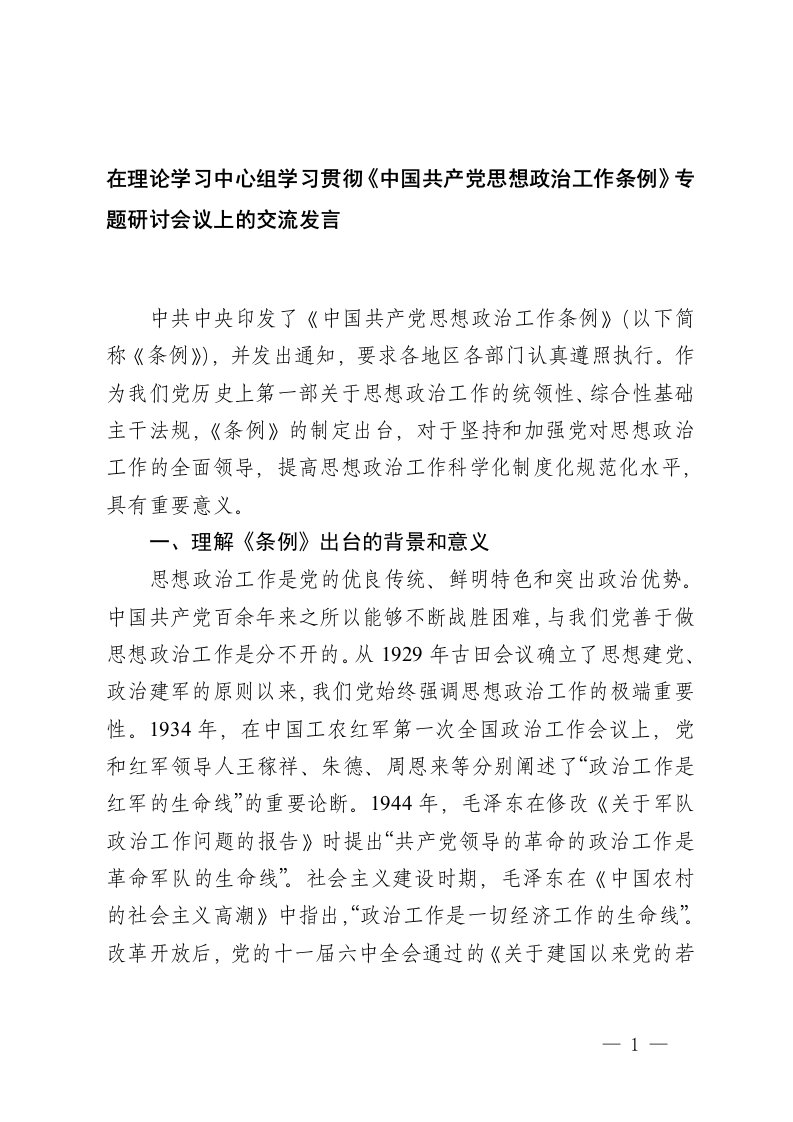 思想,中国共产党,发言,工作,理论学习,交流发言,理论学习中心组,专题研讨会,学习,工作条例,思想政治工作,思想政治,专题研讨,专题2025-2026在理论学习中心组学习贯彻中国共产党思想政治工作条例专题研讨会议上的交流发言思想,中国共产党,发言,工作,理论学习,交流发言,理论学习中心组,专题研讨会,学习,工作条例,思想政治工作,思想政治,专题研讨,专题2025-2026在理论学习中心组学习贯彻中国共产党思想政治工作条例专题研讨会议上的交流发言