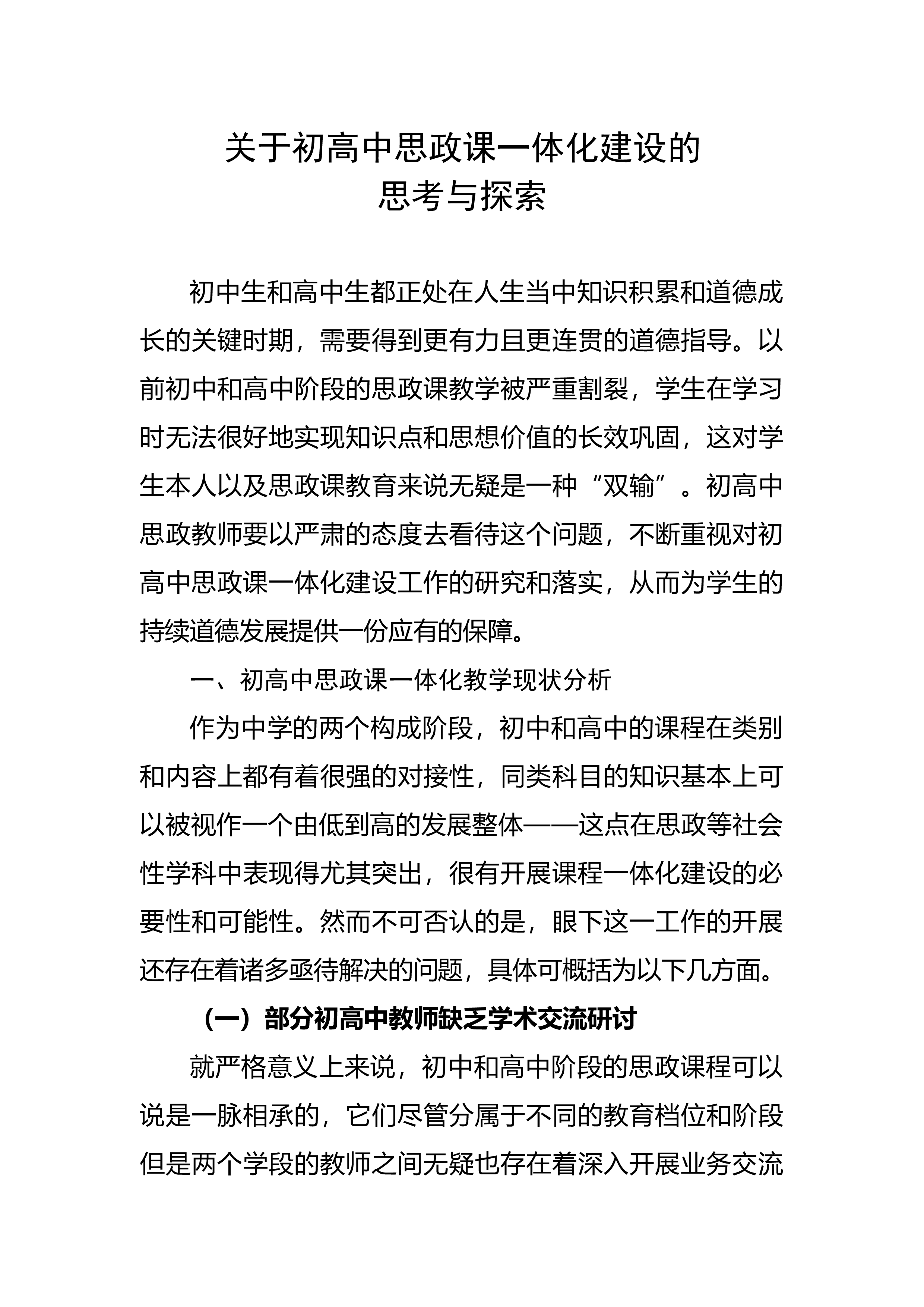 【教育系统】关于初高中思政课一体化建设的思考与探索---调研报告