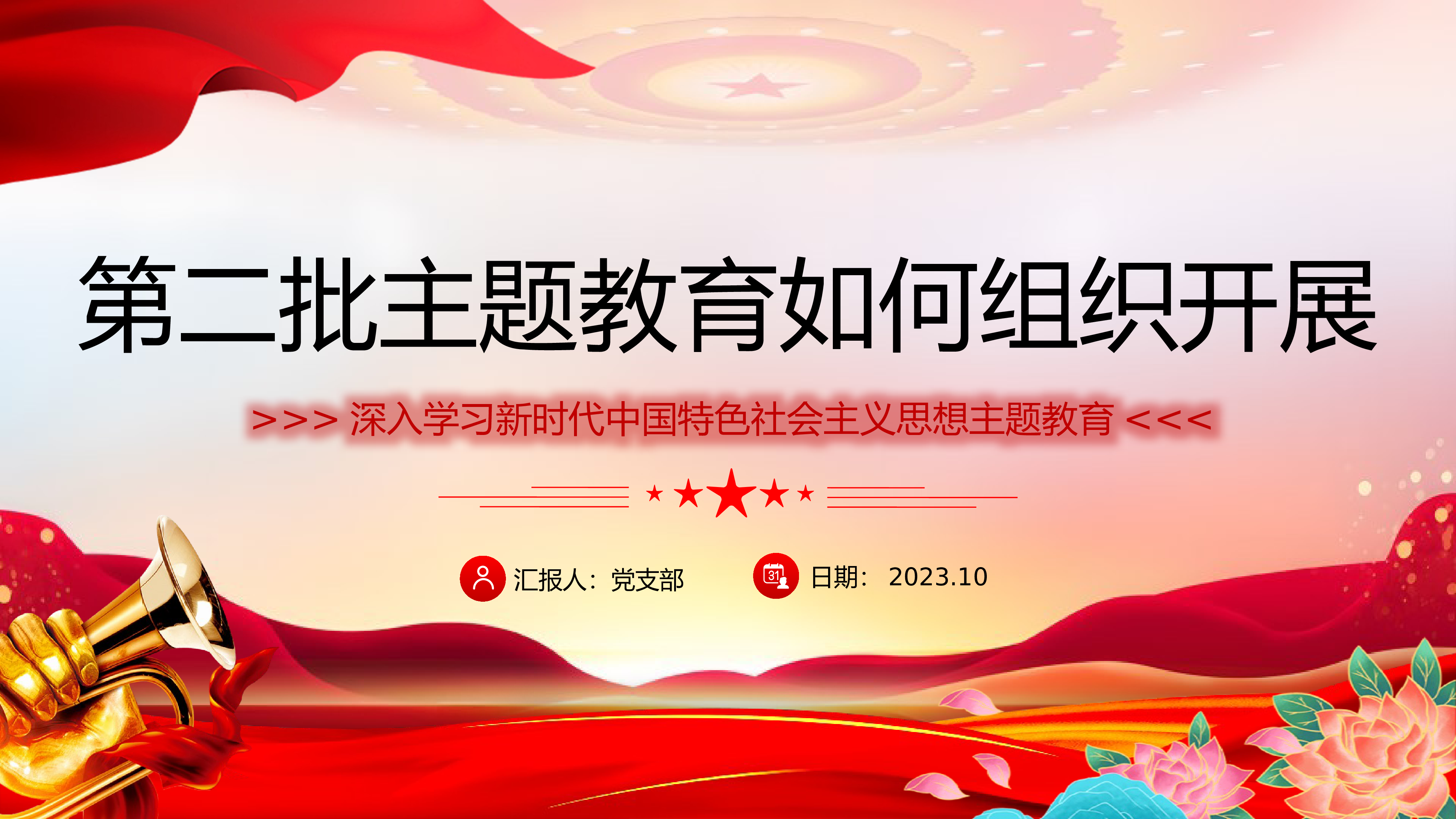 汇报人:党支部日期:2023.10第二批教育如何组织开展>>>深入学习新时代中国特色社会主义思想教育