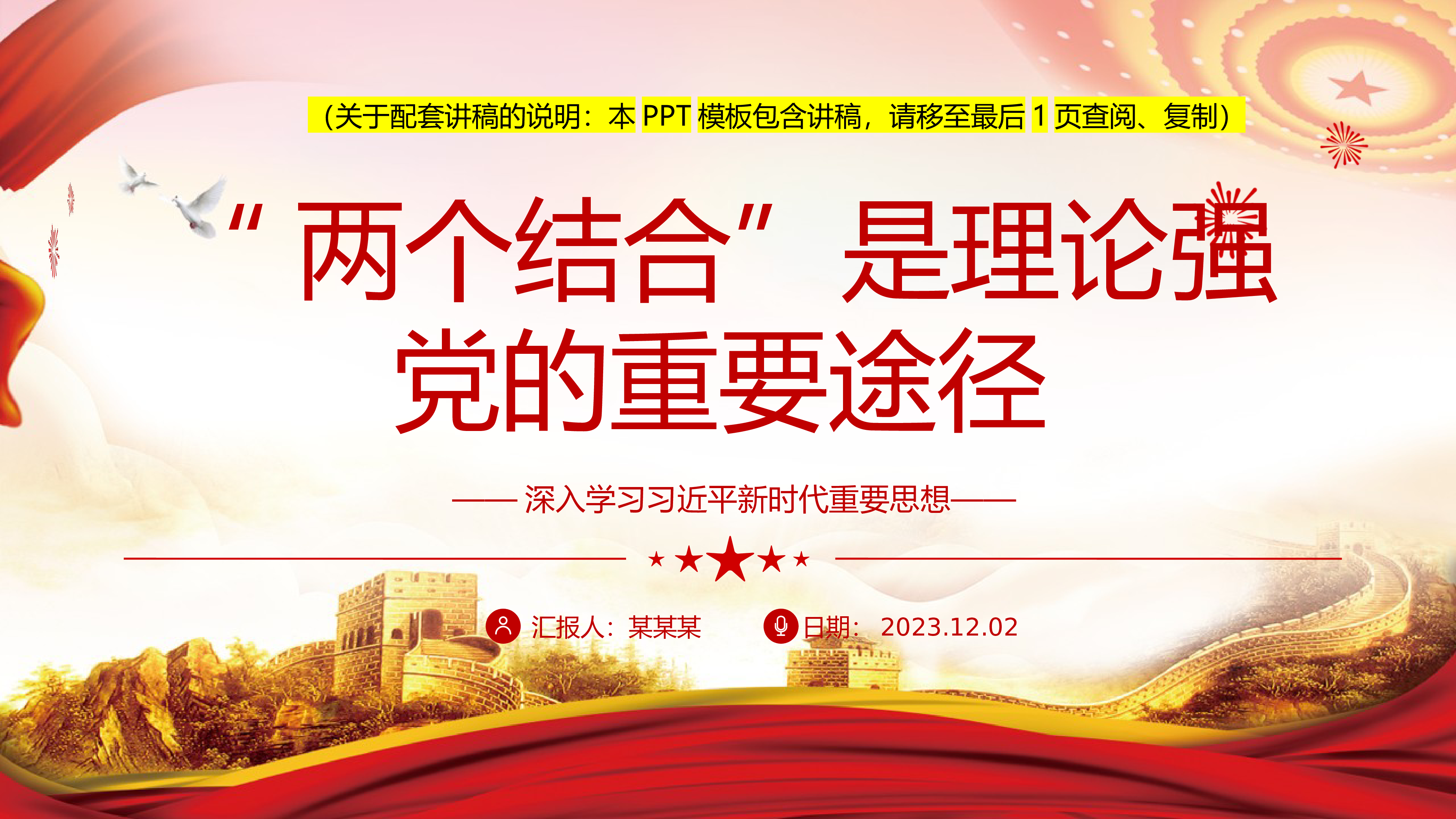 2024微党课2023“两个结合”是理论强党的重要途径党课ppt模板(含配套讲稿)深入学习习近平新时代重要思想基层党组织党支部党员学习培训党课课件