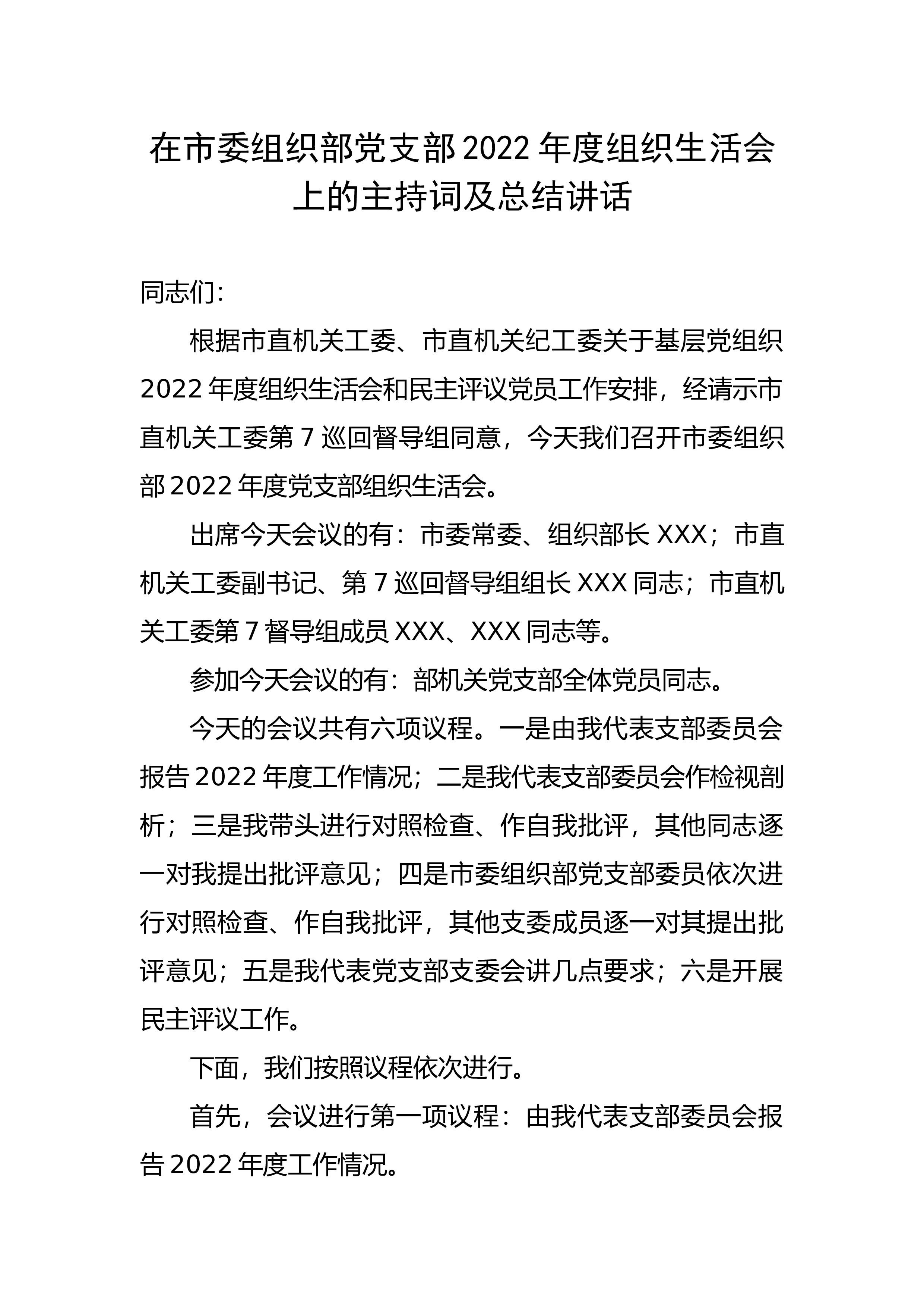 为深入学习贯彻习近平总书记关于加强党支部建设的重要指示精神,深入贯彻落实党的二十大精神和全国、全省、全市组织部长会议精神、全县组织工作会议精神以及省市组织系统“三抓三促”行动推进会议精神,常态化抓好软弱涣散基层党组织整顿提升,全面加强基层党组织建设,充分发挥基层党组织战斗堡垒作用,根据省市县委组织部关于扎实有效开展2023年软弱涣散基层党组织整顿提升工作相关要求,按照“一村一策”要求,结合XXX村工作实际,进一步做好XXX村党支部软弱涣散党组织整顿提升工作,制定本实施方案。一、工作目标整顿提升要以习近平新时代中国特色社会主义思想为指导深入贯彻新时代党的建设总要求和党的组织路线。通过软弱涣散党组...