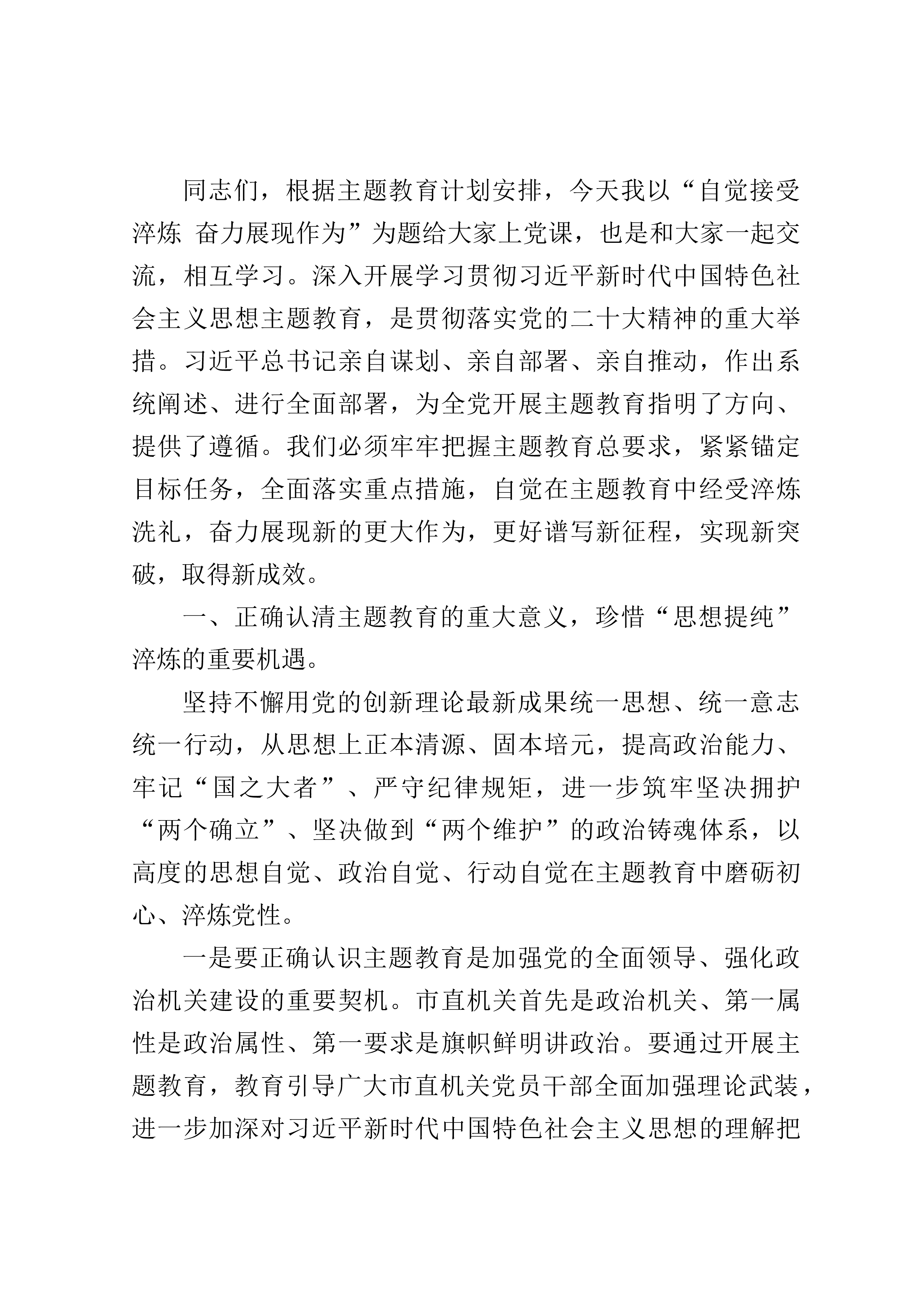 同志们,根据主T教育计划安排,今天我围绕“坚持全面从严治党”为题给大家上一次党课。今天,我主要结合习近平总书记系列重要讲话精神,联系分管的工作实际,谈谈自己的认识和体会。下面,我讲两个方面的内容。第一个方面、充分认识“全面从严治党”的重要意义全面从严治党是持续深入推进党的思想政治建设、组织建设和作风建设的重要举措,是新时期党性修养、党性教育的重要方面,也是严肃党内政治生活、严明党的政治纪律和政治规矩的重要抓手,充分彰显了我们党持之以恒抓作风、改作风、树形象的坚定决心,具有重大的现实意义与深远的历史意义。一是强化思想建党的现实需要。思想政治工作是无产阶级政党的理论优势和锐利武器。我们党百年的奋斗...