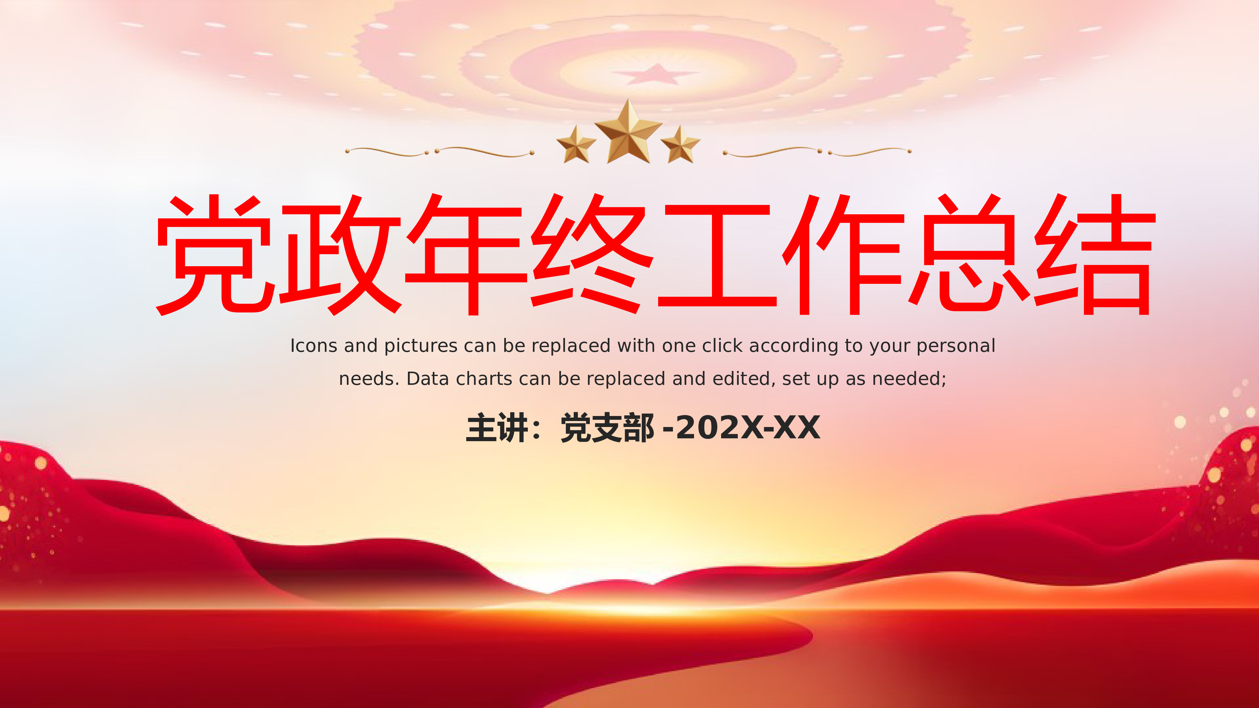 党政年终工作总结Iconsandpicturescanbereplacedwithoneclickaccordingtoyourpersonalneeds.Datachartscanbereplacedandedited,setupasneeded;主讲:党支部-202X-XX目录01-年度工作概述02-重点工作汇报03-工作不足之处04-工作改进计划IconsandpicturescanbereplacedwithoneclickaccordingtoyourIconsandpicturescanbereplacedwithoneclickaccordingtoyourIconsandpic...