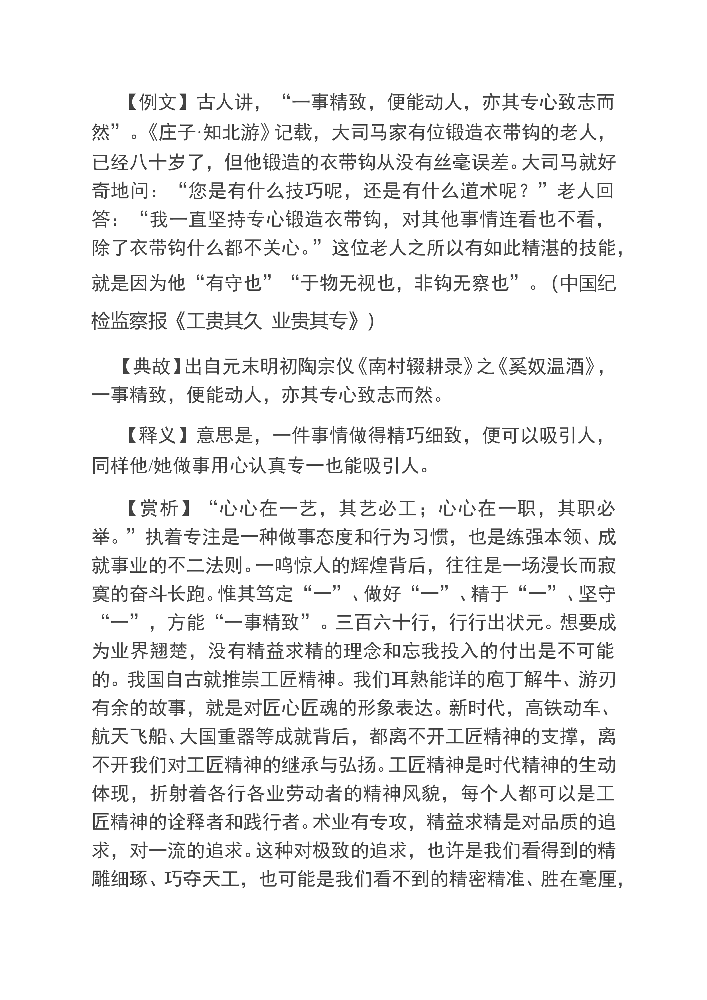 【写材料用典】不受曰廉,不污曰洁【例文】古人云:“不受曰廉,不污曰洁。”廉洁是从政为官的基本品德标准,也是确保一方风清气正的前提和基础。廉洁自律,贵在廉洁,难在自律。一个人能否廉洁自律,最大的敌人是自己,最难战胜的敌人也是自己。党员干部要时刻保持清醒的头脑和严于律己的作风,经常从灵魂深处不断地自我警示、自我反省和自我克制,坚持“慎”字当头,把慎初、慎微、慎独、慎友作为处事原则,不断筑牢思想防线,提升党性修养,做到廉洁自律。(中国纪检监察报《廉洁自律贵在“四慎”》)【典故】出自东汉王逸在《楚辞·章句》中的注释,不受曰廉,不污曰洁。盖无廉则无新不取,无耻则无新不为。【释义】意思是,不接受他人馈赠的...