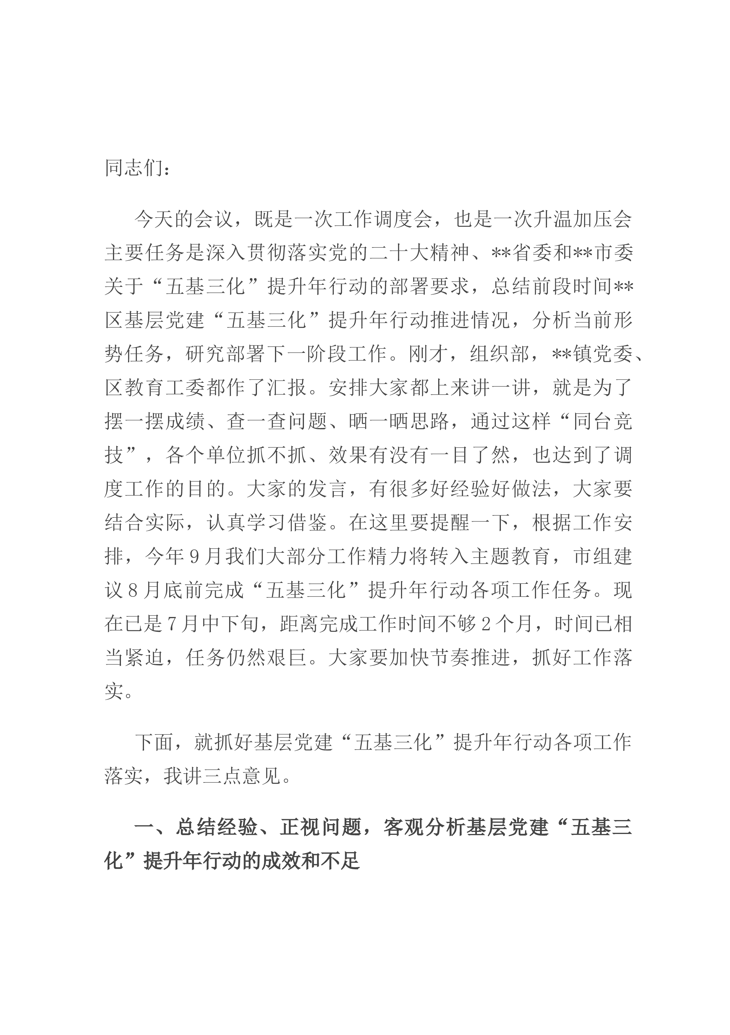 书记在2023年基层党建“五基三化”提升年行动调度会上的讲话